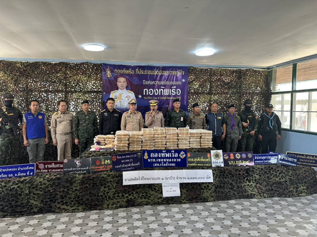 นรข.เขตหนองคาย (สถานีเรือสังคม) บูรณาการหน่วยงานความมั่นคงในพื้นที่อำเภอสังคม จังหวัดหนองคาย รวบชาว สปป.ลาว ขนยานรกเข้าประเทศไทย 1,316,000 เม็ด