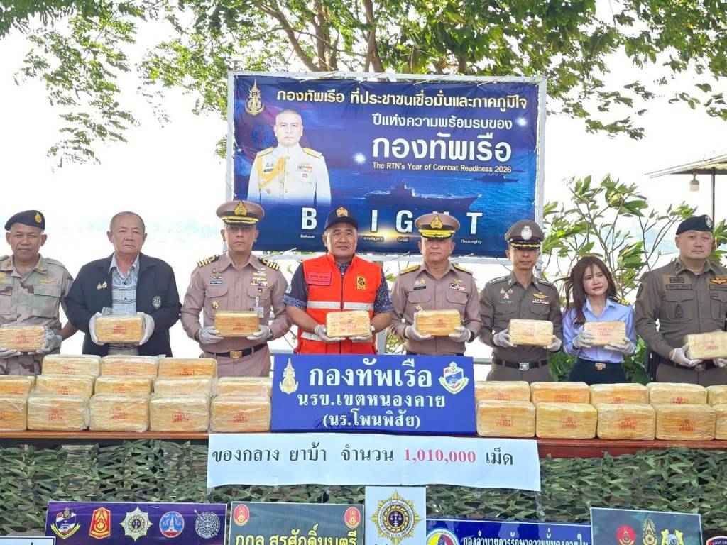 ผู้ว่าราชการจังหวัดหนองคาย ,รองผู้ว่าราชการจังหวัดหนองคาย พร้อมเจ้าหน้าที่ฝ่ายปกครองจังหวัดหนองคาย ร่วมกันแถลงตรวจยึดยาบ้าจำนวน 26,000 เม็ด