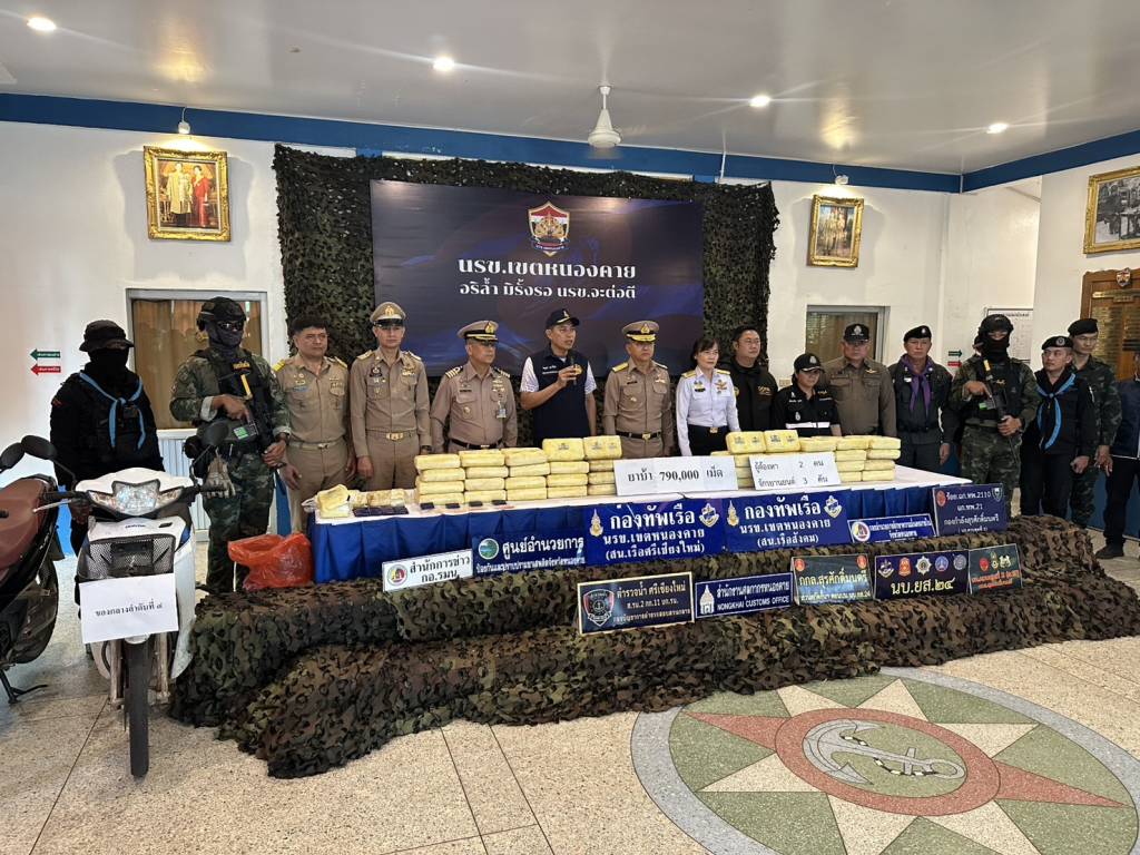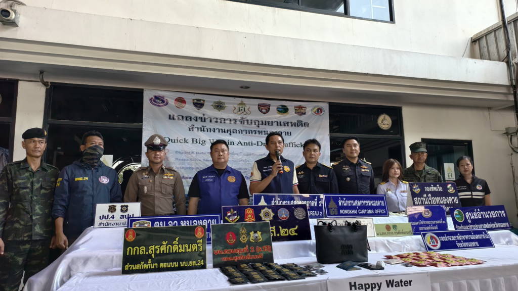 ศุลกากรหนองคาย โชว์ผลงานจับกุมหญิงชาว สปป.ลาว ที่ซุกซ่อนแฮปปี้วอเตอร์ไว้ในกระเป๋าถือ และซุกซ่อนบริเวณด้านในกางเกงด้านหน้า รวมทั้งสิ้น 40 หีบห่อ น้ำหนักรวม 3,000 กรัม มูลค่าโดยประมาณ 80,000 บาท สารภาพร...