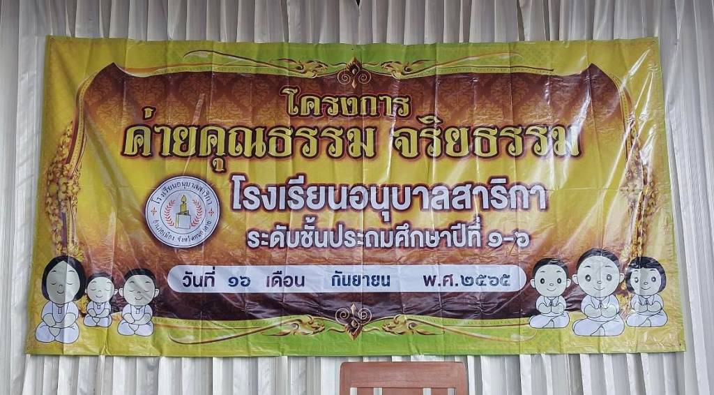 โครงการค่ายคุณธรรมจริยธรรม ที่จัดให้มีขึ้นในครั้งนี้ เพื่อปลูกจิตสำนึกส่งเสริมสนับสนุนให้ผู้เรียนในโรงเรียนมีคุณธรรมจริยธรรมมีระเบียบวินัย ส่งเสริมเอกลักษณ์ มีวัฒนธรรมอันดีงามของไทย อันเป็นสิ่งที่ผู้เรียนควรตระหนัก และจำเป็นต้องพัฒนาเป็นอย่างยิ่ง ซึ่งถือเป็นรากฐานที่สำคัญในการพัฒนาชีวิตมนุษย์ให้ดำรงชีวิตอยู่ในสังคมอย่างมีความสุข ในการนี้ ผอ.วาสนา ไชยศาตร์ ผู้อำนวยการโรงเรียนอนุบาลสาริกา เป็นประธานฝ่ายฆราวาส โดยมี คณะครู ผู้ปกครอง นักเรียน กรรมการสถานศึกษาถวายการต้อนรับ และร่วมกิจกรรมในครั้งนี้ด้วย.