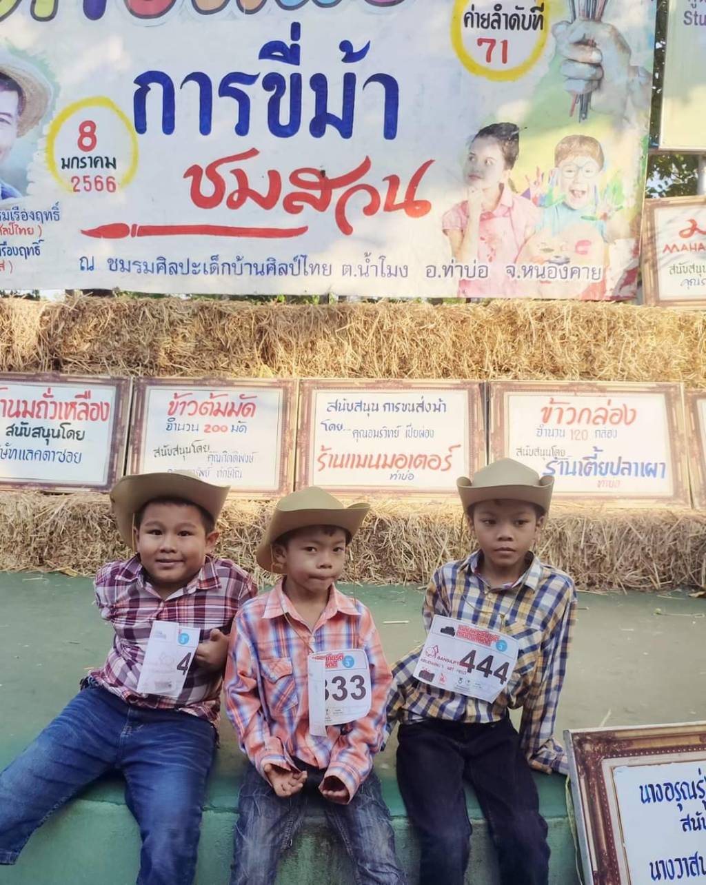 วันนี้ (25 ธ.ค. 65) เวลา 15.00 น. ณ ชมรมศิลปะเด็กบ้านศิลป์ไทย (บ้านทุ่งศิลป์ครูแดง) เลขที่ 124 หมู่ 3 บ้านทุ่ม ต.น้ำโมง อ.ท่าบ่อ จ.หนองคาย นายเฉลิมศักดิ์ ธรรมเรืองฤทธิ์ (ครูแดง) ประธานชมรมศิลปะเด็กบ้านศิลป์ไทย พร้อมด้วย “ครูสดใส” คุณทศพล ธรรมเรืองฤทธิ์ ร่วมกันแถลงข่าวการจัดค่ายศิลปะการขี่ม้าชมสวนงานปีใหม่-งานวันเด็ก ประจำปี 2566