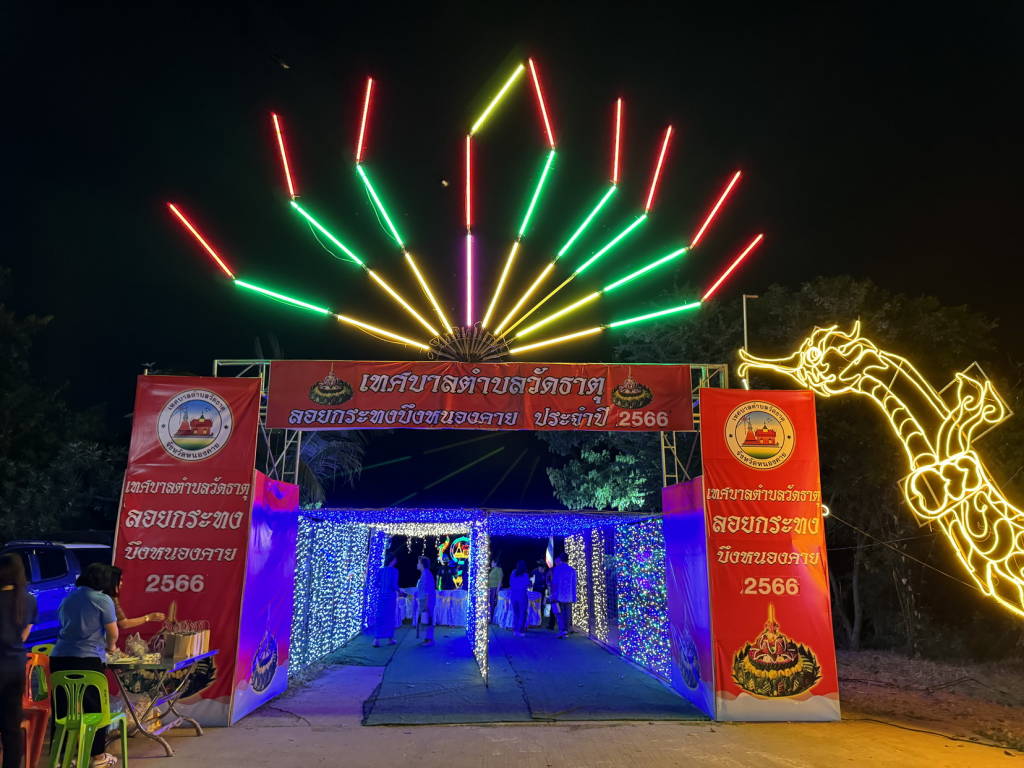 นายปราโมทย์ สุขสวัสดิ์ นายกเทศมนตรีตำบลวัดธาตุ กล่าวว่า ปีนี้มีการจัดงาน 2 วัน คือวันที่ 26 – 27 พฤศจิกายน 2566 โดยในวันแรกจะมีการประกวดตำส้มตำลีลา ประกวดธิดาส้มตำ การแสดงของนักเรียนในเขตพื้นที่ตำบลวัดธาตุ ศิลปะแม่ไม้มวยไทย และมหรสพ ส่วนวันที่ 27 พฤศจิกายน จะมีการประกวดนางนพมาศ ประกวดกระกวดกระทงเส้นผ่าศูนย์กลาง 1 เมตร การแสดงจากสำนักงานวัฒนธรรมจังหวัดหนองคาย การแสดงจากชมรมนาฏศิลป์จังหวัดหนองคาย การแสดงของนักเรียนในเขตพื้นที่ตำบลวัดธาตุ และมหรสพ การจัดงานจะใช้วัสดุจากธรรมชาติ ซึ่งปีนี้จะมีกระทงที่ทำจากกะลามะพร้าว ที่ได้รับการสนับสนุนและร่วมจัดงานจากสมาคมเวียดนามหนองคาย โดยได้นำกระทงกะลามะพร้าวหรือกะโป๋ไฟ จำนวน 1 หมื่นอันมาลอยเต็มบึงหนองคาย ที่จะมีความสวยงามเป็นอย่างมาก ถือเป็นแห่งเดียวในประเทศไทยที่มีการนำกระทงที่ทำจากกะลามะพร้าวมาลอยในบึง นอกจากนี้ยังมีอุโมงค์ไฟที่สวยงาม และในบึงหนองคาย และพื้นที่รอบ ๆ บึงหนองคาย ก็ได้มีการประดับไฟอย่างสวยงาม จึงขอเชิญชวนชาวหนองคาย และนักท่องเที่ยวทั้งฝั่งไทยและฝั่ง สปป.ลาว มาร่วมงานประเพณีลอยกระทงบึงหนองคาย ที่ปีนี้ทางเทศบาลตำบลวัดธาตุมีความตั้งใจในการจัดงานให้ยิ่งใหญ่เป็นอย่างมาก และการประกวดนางนพมาศมีนี้ก็เป็นการเปิดกว้าง มีนางนพมาศจาก สปป.ลาว มาร่วมประกวดด้วย ส่วนเส้นทางในการเดินทางมาร่วมงานที่บึงหนองคาย ก็สามารถเดินทางมาร่วมได้อย่างสะดวกถึง 3 เส้นทาง.