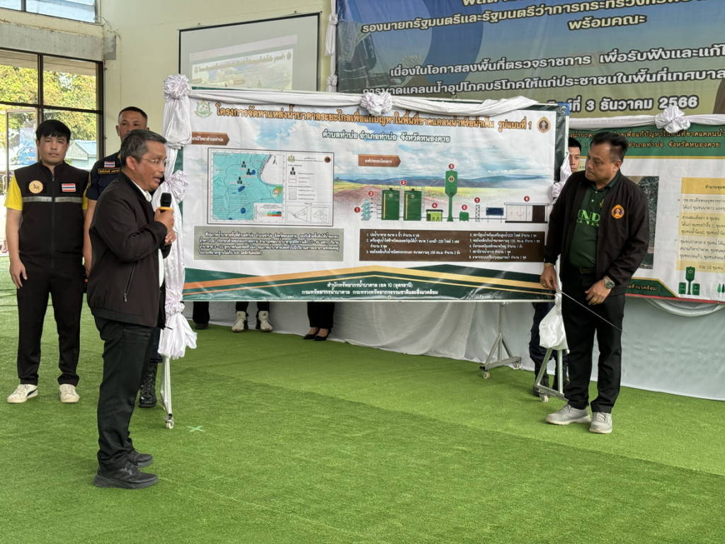 รองนายกรัฐมนตรีและรัฐมนตรีว่าการกระทรวงทรัพยากรธรรมชาติและสิ่งแวดล้อม ลงพื้นที่เพื่อรับฟังปัญหาความเดือดร้อนของประชาชน และรับข้อเสนอ โครงการจัดหาน้ำบาดาล ให้ความช่วยเหลือสนับสนุนการจัดหาน้ำบาดาล แก้ไขปัญหาการขาดแคลนน้ำอุปโภคบริโภค พื้นที่ตำบลท่าบ่อ อำเภอท่าบ่อ จังหวัดหนองคาย