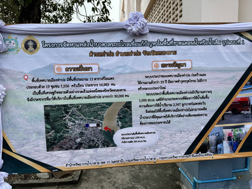 เทศบาลเมืองท่าบ่อ จึงขอรับการสนับสนุนระบบประปาพร้อมระบบกระจายน้ำ ตามโครงการจัดหาแหล่งน้ำบาดาลระยะไกลเพื่อแก้ปัญหาในพื้นที่ขาดแคลนน้ำหรือน้ำเค็ม จากกรมทรัพยากรน้ำบาดาล กระทรวงทรัพยากรธรรมชาติและสิ่งแวดล้อม ในพื้นที่ 3 แห่ง ซึ่งคาดว่าจะสามารถแก้ไขปัญหาการขาดแคลนน้ำอุปโภคบริโภคให้กับประชาชนได้อย่างยั่งยืน ยกระดับคุณภาพชีวิตของประชาชน และรองรับการขยายตัวทางเศรษฐกิจในพื้นที่ให้ดียิ่งขึ้น