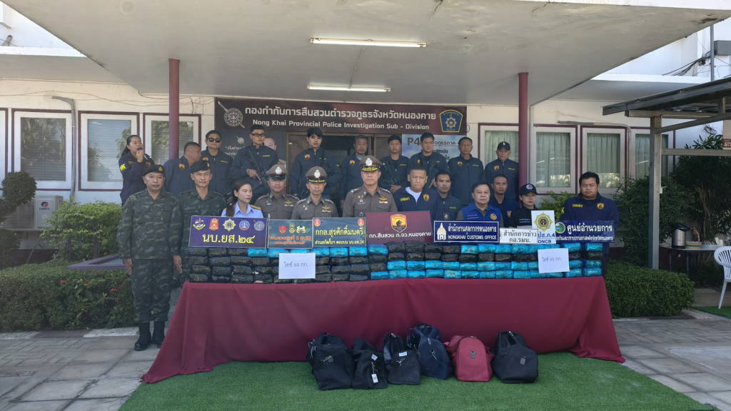 ชาวหนองคายและนักท่องเที่ยวร่วมกันสรงน้ำหลวงพ่อพระใสแห่รอบเมืองอย่างใกล้ชิด