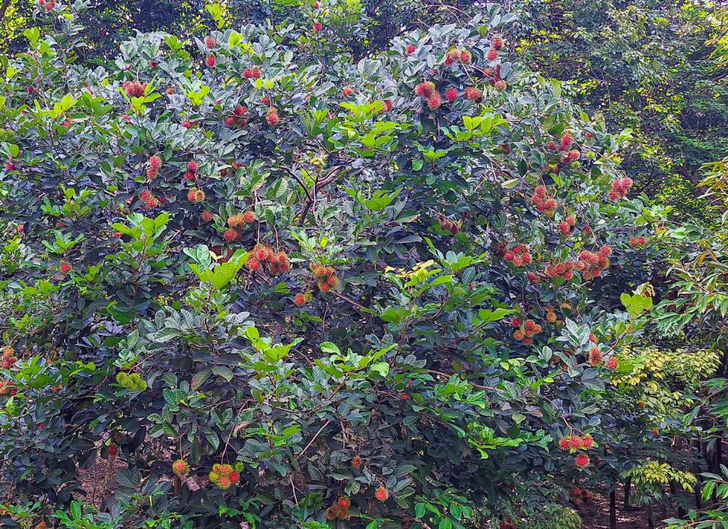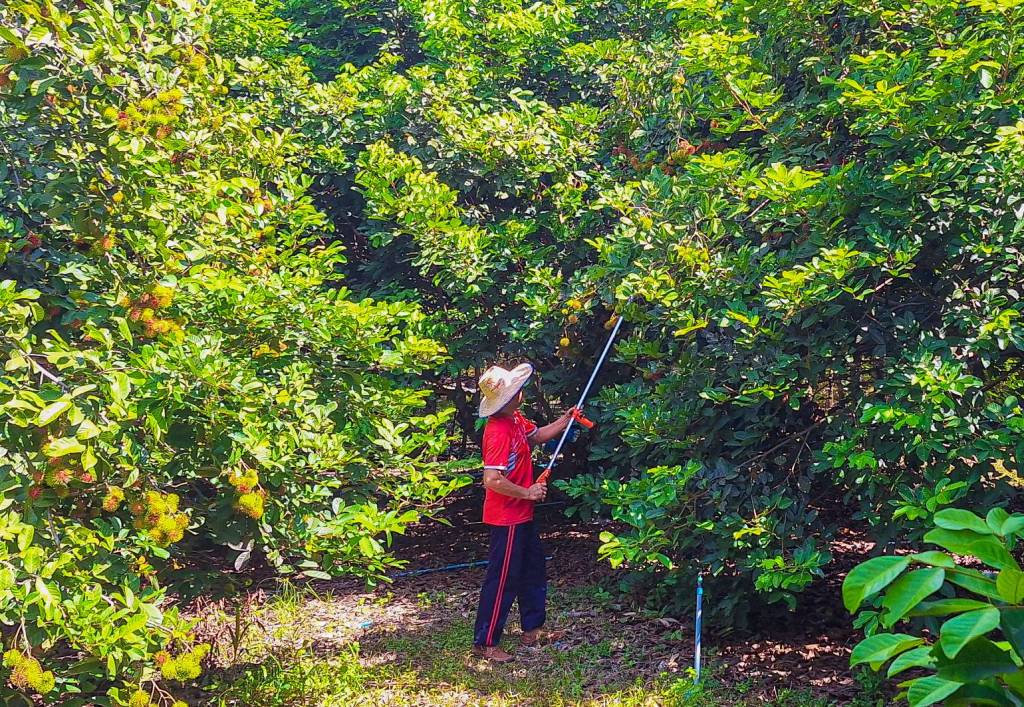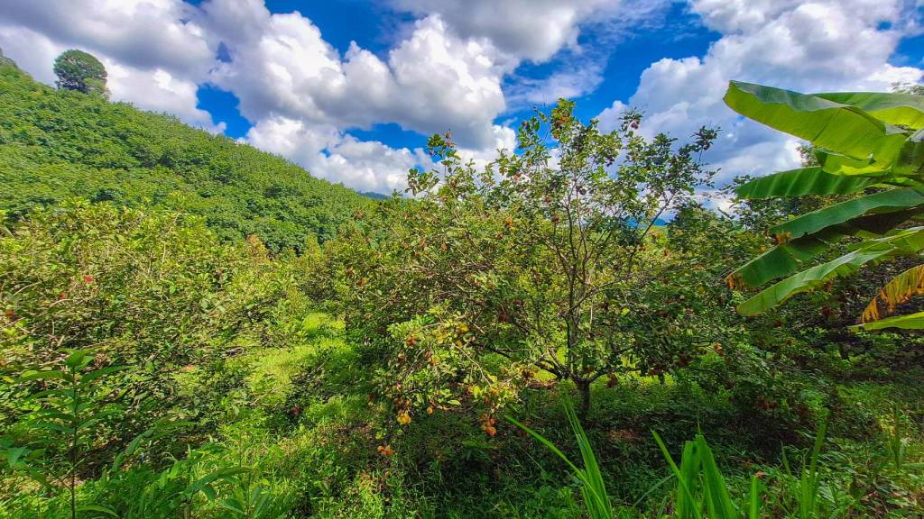 ที่แปลงปลูกเงาะ ทุเรียน และผลไม้อื่นๆเช่นมังคุด ในพื้นที่ บ้านวังมน ต.บ้านม่วง อ.สังคม จ.หนองคาย ของนายแสง เหลืองงาม อดีตผู้ใหญ่บ้านบ้านวังมนหรือ “ไร่ตาแสง” ซึ่งเป็นการปลูกไม้ผลแปลงใหญ่ ได้นำสื่อมวลชนเดินชมผลไม้ที่ปลูกซึ่งในปีนี้ เงาะดกได้ผลดี ส่วนทุเรียน ปีนี้ผลผลิตดี จุดเด่นเปลือกบาง กลิ่นไม่แรง รสชาติหวานอร่อย