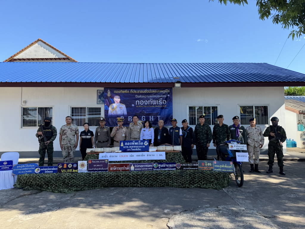 เมื่อเวลา 14.40 น.วันนี้ (29 พ.ย. 67) ที่กองร้อยเฉพาะกิจทหารพรานที่ 2104 อ.โพนพิสัย จังหวัดหนองคาย นางสาวปราณี วงศ์บุตร รองผู้ว่าราชการจังหวัดหนองคาย , พ.ต.วิทยา สิงห์อร ผบ.ร้อย.ฉก.ทพ.2104 พร้อมหน่วยงานที่เกี่ยวข้อง ได้ร่วมกันแถลงข่าวการตรวจยึดเฮโรอีนน้ำหนัก 10.12 กก. พร้อมผู้ต้องหา 2 ชาย คือ น.ส.บุษบา (ขอสงวนนามสกุล) อายุ 30 ปี ชาว ต.ย่านตาขาว อ.ย่านตาขาว จ.ตรัง และท้าววิไล อายุ 65 ปี ชาวเมืองปากงึม แขวงนครหลวงเวียงจันทน์ สปป.ลาว ที่เจ้าหน้าที่ ทหารพรานกองร้อยเฉพาะกิจทหารพรานที่ 2104 จังหวัดหนองคาย บรูณาการกับหลายหน่วยงานตรวจยึดและจับกุมได้ ที่บริเวณริมฝั่งแม่น้ำโขง ปากห้วยน้ำเป บ้านน้ำเป หมู่ที่ 1 ต.รัตนวาปี อ.รัตนวาปี จ.หนองคาย เมื่อเวลาประมาณ 08.15 น.วันที่ 28 พฤศจิกายน 2567 ที่ผ่านมา