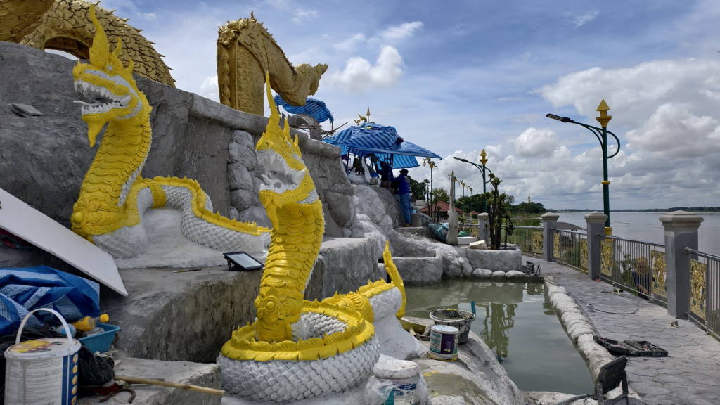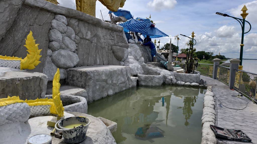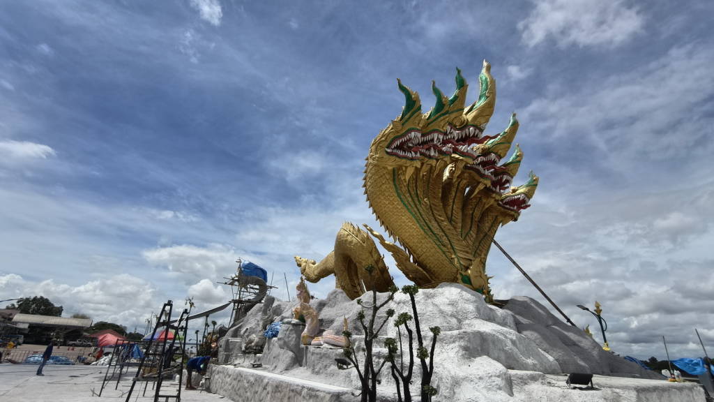 นายกเทศมนตรีตำบลโพนพิสัย เปิดเผยต่อไปอีกว่า เทศบาลตำบลโพนพิสัย ได้จัดทำโครงการของบประมาณจากสำนักงบประมาณ ในปีงบประมาณ 2568 ในการปรับปรุงภูมิทัศน์ องค์พญาพิสัยสัตนาคราช ณ ลานนาคาเบิกฟ้า 1 ที่ใช้ในการจัดพิธีบวงสรวงและรำบวงสรวง ซึ่งตามสัญญามีระยะเวลาในการดำเนินการ 5 เดือน สิ้นสุดสัญญาในเดือนธันวาคม 2568 แต่ทางเทศบาลฯได้ขอให้ผู้รับจ้างเร่งดำเนินการให้เสร็จทันช่วงออกพรรษา ก็ได้รับความร่วมมือเร่งดำเนินการให้พื้นที่ ๆ ใช้ในการประกอบพิธีบวงสรวงและรำบวงสรวง จะแล้วเสร็จสวยงาม 80 – 90 % เดิมนั้นพื้นที่บริเวณองค์พญาพิสัยสัตนาคราชมีการประดับตกแต่งสวยงาม ยิ่งใหญ่อลังการเฉพาะในช่วงวันออกพรรษาของแต่ละปีเท่านั้น แต่หลังออกพรรษาไปแล้วประชาชนและนักท่องเที่ยว โดยเฉพาะสายมูที่ได้เดินทางมาสักการะองค์พญาพิสัยสัตนาคราช พบว่าตั้งอยู่บนพื้นปูนธรรมดาดูไม่น่าศรัทธาไม่น่าเลื่อมใส อีกทั้งสร้างมาเป็นระยะเวลานานกว่า 10 ปี ทำให้ทรุดโทรม จึงมีคนให้คำแนะนำให้มีการปรับปรุงบูรณะให้ดูอลังการ น่าเลื่อมใสศรัทธา จึงได้จัดทำโครงการปรับปรุงภูมิทัศน์ฯ ซึ่งผู้ที่ออกแบบ มีจินตนาการว่า ให้มอบดูเหมือนองค์พญานาคสถิตอยู่บนสวรรค์ชั้น 1 ตามความเชื่อของศาสนาพุทธ