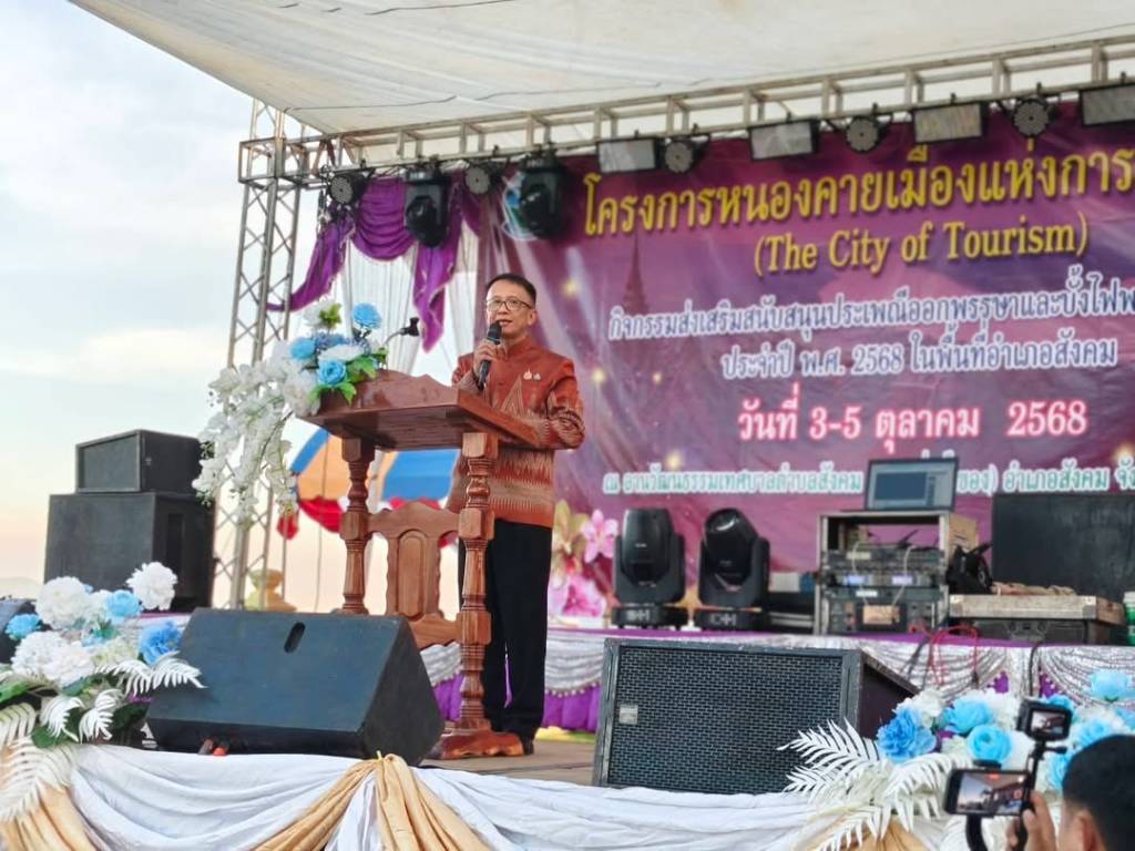 เมื่อที่ 4 ตุลาคม 2568 ณ ลานวัฒนธรรมเทศบาลตำบลสังคม อำเภอสังคม นายสมภพ สมิตะสิริ ผู้ว่าราชการจังหวัดหนองคาย มอบหมายให้ นายประทีป อุ่ยเจริญ ปลัดจังหวัดหนองคาย เป็นประธานในพิธีเปิดงาน “ประเพณีออกพรรษาและบั้งไฟพญานาคโลก อำเภอสังคม ประจำปี 2568” โดยมี นายนวน โทบุตร นายอำเภอสังคม กล่าวรายงานถึงวัตถุประสงค์การจัดงาน