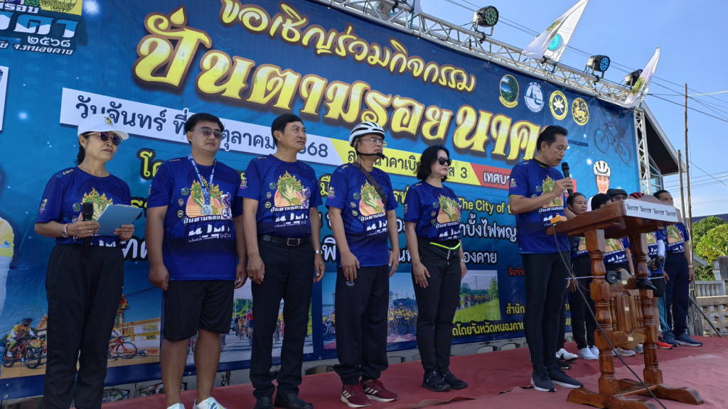 เมื่อเวลา 07.30 น.วันนี้ (6 ต.ค. 68) ณ เวทีลานเบิกฟ้า 3 อ.โพนพิสัย จ.หนองคาย นายไพฑูรย์ มหาชื่นใจ รองผู้ว่าราชการจังหวัดหนองคาย เป็นประธานในพิธีเปิดโครงการหนองคายเมืองแห่งการท่องเที่ยว (The City of tourism) กิจกรรมส่งเสริมสนับสนุนประเพณีออกพรรษาและบั้งไฟพญานาคโลก กิจกรรมปั่นตามรอยนาคา ประจำปี 2568 ของอำเภอโพนพิสัย โดยเทศบาลตำบลโพนพิสัย ร่วมกับอำเภอโพนพิสัย เครือข่ายและหน่วยงานที่เกี่ยวข้องจัดให้มีขึ้น มี ดร.จิดาภา สุนทรธนากุล ที่ปรึกษารัฐมนตรีช่วยว่าการกระทรวงมหาดไทย (นายทรงศักดิ์ ทองศรี) และนางพัชรณัญญ์ มหาชื่นใจ รองนายกเหล่ากาชาดจังหวัดหนองคาย ร่วมกิจกรรมในครั้งนี้ด้วย