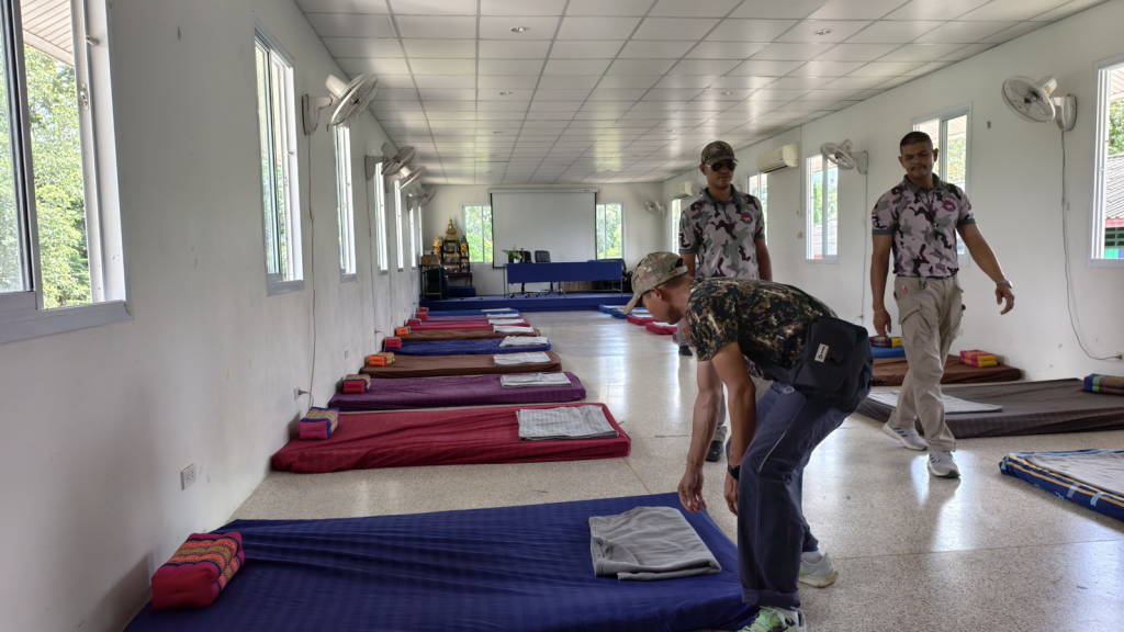 ดังนั้นเพื่อเป็นการบริการประชาชนและนักท่องเที่ยวที่เดินมาเที่ยวงานประเพณีออกพรรษาและบั้งไฟพญานาคโลก ประจำปี 2568 และเดินทางมาชมปรากฏการณ์ “บั้งไฟพญานาค” ที่ยังไม่มีที่พัก นายสมภพ สมิตะสิริ ผู้ว่าราชการจังหวัดหนองคาย ได้มอบหมายให้กองร้อยอาสารักษาดินแดนจังหวัดหนองคาย ที่ 1 ได้จัดเตรียมที่พักไว้รองรับประชาชนและนักท่องเที่ยวดังกล่าว โดยได้มีการกางเต็นท์ ปูที่นอน จัดเตรียม หมอนและผ้าห่ม และจัดเตรียมพื้นที่กางเต็นท์ ไว้ให้บริการประชาชนนักท่องเที่ยว ที่จะเดินทางมาเที่ยวชมปรากฏการณ์บั้งไฟพญานาคในวันออกพรรษา ที่ยังไม่มีที่พักฟรี ได้เตรียมเต็นท์สนามไว้จำนวน 40 เต็นท์ , ที่นอนภายในอาคาร 2 อาคาร สามารถรองรับประชาชนและนักท่องเที่ยวได้ จำนวน 50 คน และจัดเตรียมสนามฟุตบอลเป็นจุดไว้สำหรับกางเต็นท์ ที่สามารถกางเต็นท์ได้ พร้อมจัดเจ้าหน้าที่ไว้ดูแลความปลอดภัย ตลอด 24 ชั่วโมง อีกทั้งยังมีสถานที่จอดรถกว้างขวาง รวมถึงห้องน้ำ ห้องอาบน้ำ และห้องประกอบอาหารไว้ให้ด้วย ซึ่งทั้งหมดที่จัดเตรียมไว้จะสามารถรองรับนักท่องเที่ยวได้ไม่ต่ำกว่า 200 คน ในปีที่ผ่านมามีนักท่องเที่ยวเข้าพักกว่า 100 คน ส่วนใหญ่มากันเป็นครอบครัว มีการนำเต็นท์และเครื่องนอนมาเอง