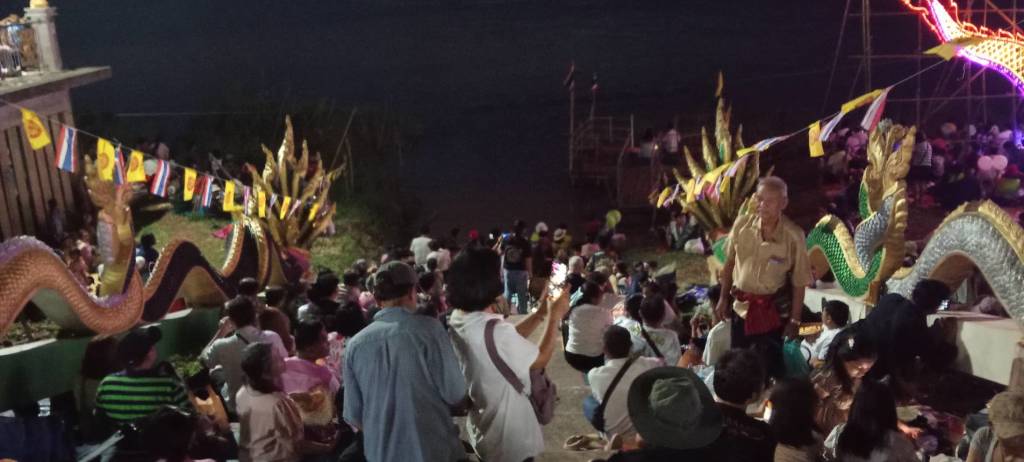 วันนี้ (7 ต.ค. 68) บรรยากาศการรอชมปรากฏการณ์บั้งไฟพญานาค ริมแม่น้ำโขง ในหลายพื้นที่ของจังหวัดหนองคาย ทั้งที่ อ.โพนพิสัย และ อ.รัตนวาปี โดยพบว่ามีนักท่องเที่ยวจำนวนมากเนืองแน่นอยู่ริมแม่น้ำโขง และก็ไม่ผิดหวังเมื่อบั้งไฟพญานาคชุดแรก ผุดขึ้นเมื่อเวลา 18.20 น. ที่แม่น้ำโขงบ้านโพนแพง (อบต.โพนแพง) ต.โพนแพง อ.รัตนวาปี บั้งไฟพญานาคสีแดงอมชมพูเกิดขึ้น 2 ลูก หลังจากนั้นก็มีบั้งไฟพญานาคเกิดขึ้นในหลายจุด เช่น ที่นิคมสร้างตนเองเปงจาน บ้านตาลชุม อ.รัตนวาปี เป็นชุดต่อเนื่องกันนับได้ 15 ลูก