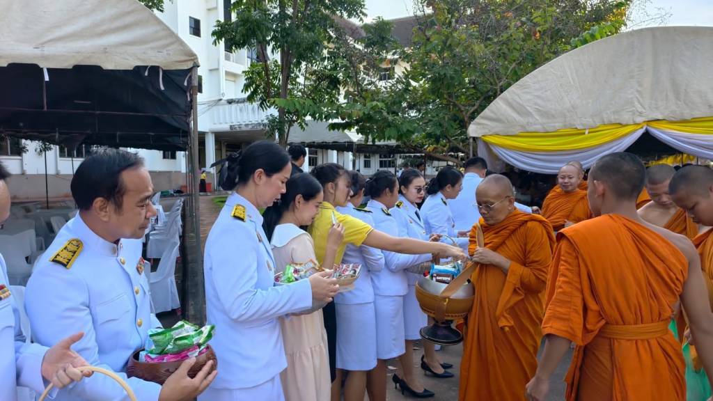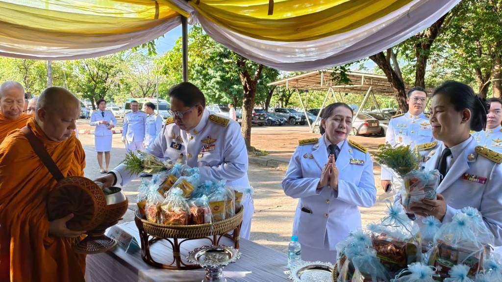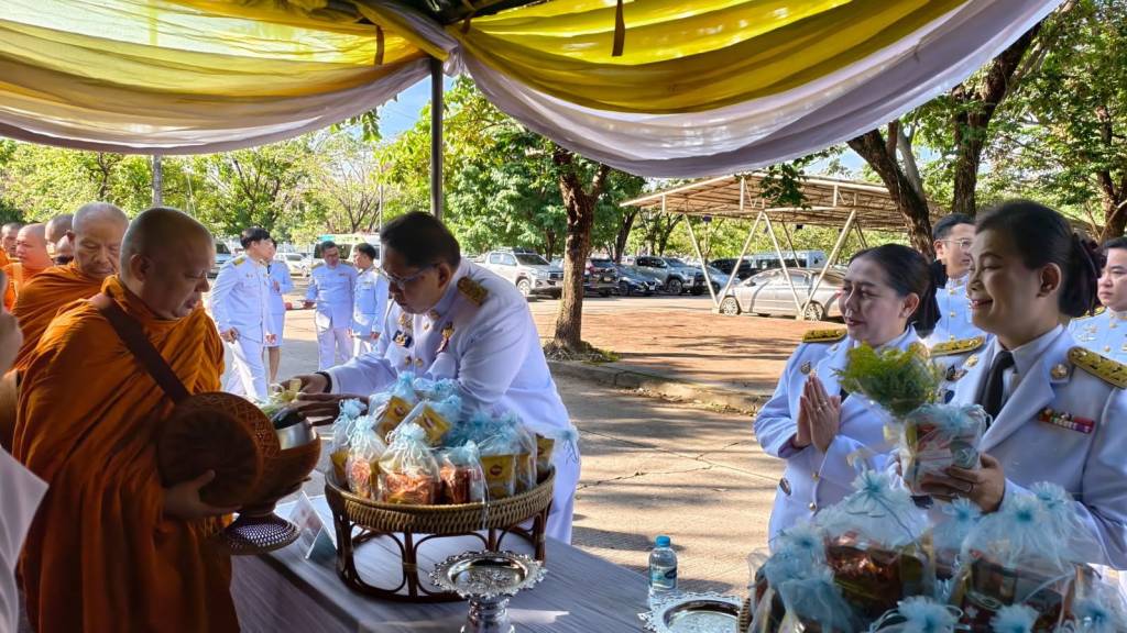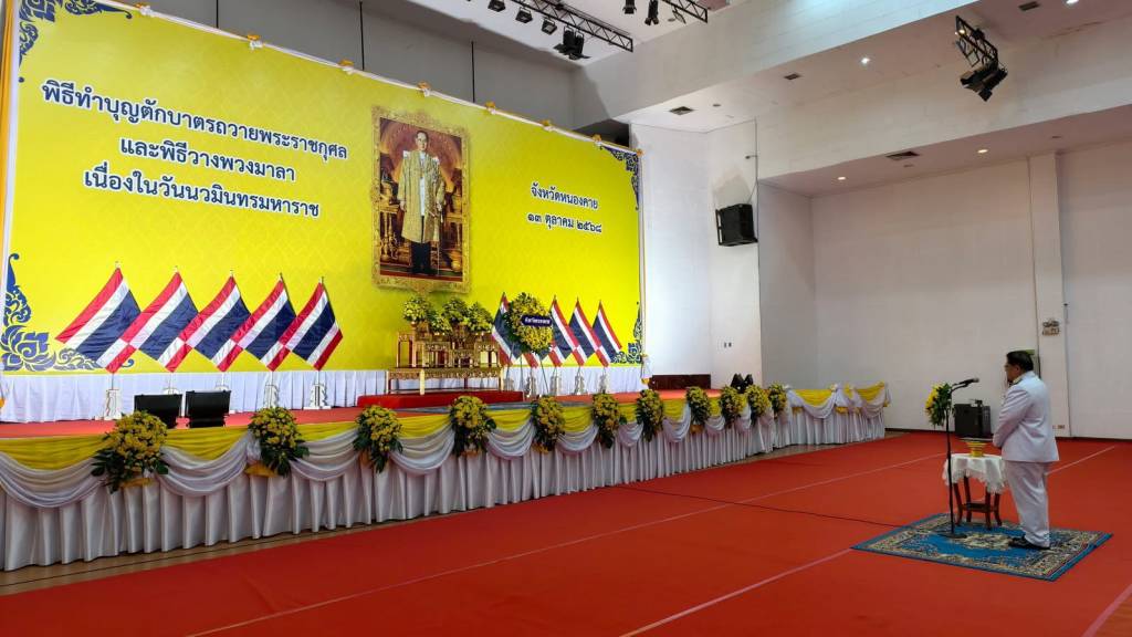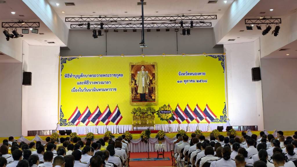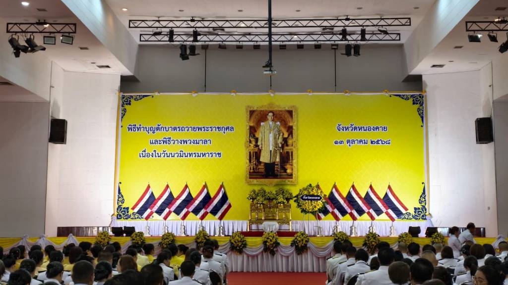 จังหวัดหนองคาย จัดพิธีทำบุญตักบาตรถวายพระราชกุศล และพิธีวางพวงมาลา เนื่องในวันนวมินทรมหาราช ประจำปี พ.ศ.2568 เพื่อเทิดพระเกียรติและน้อมรำลึกในพระมหากรุณาธิคุณอันหาที่สุดมิได้ที่พระองค์ทรงมีต่อพสกนิกรชาวไทย