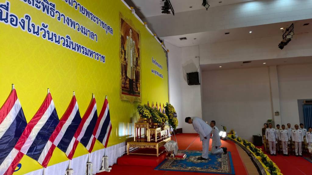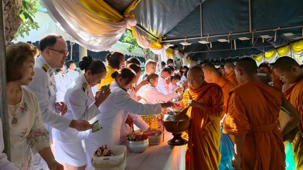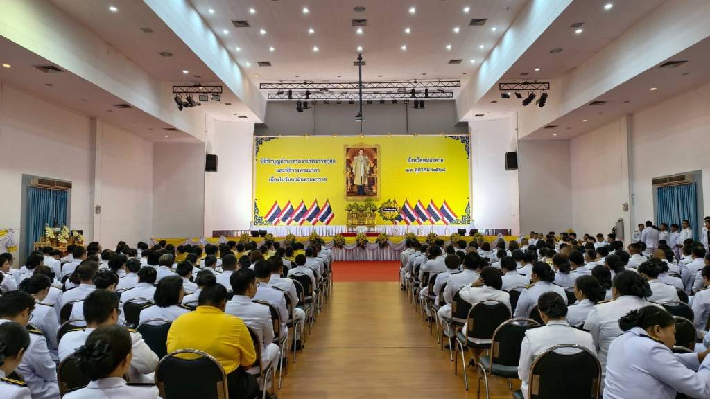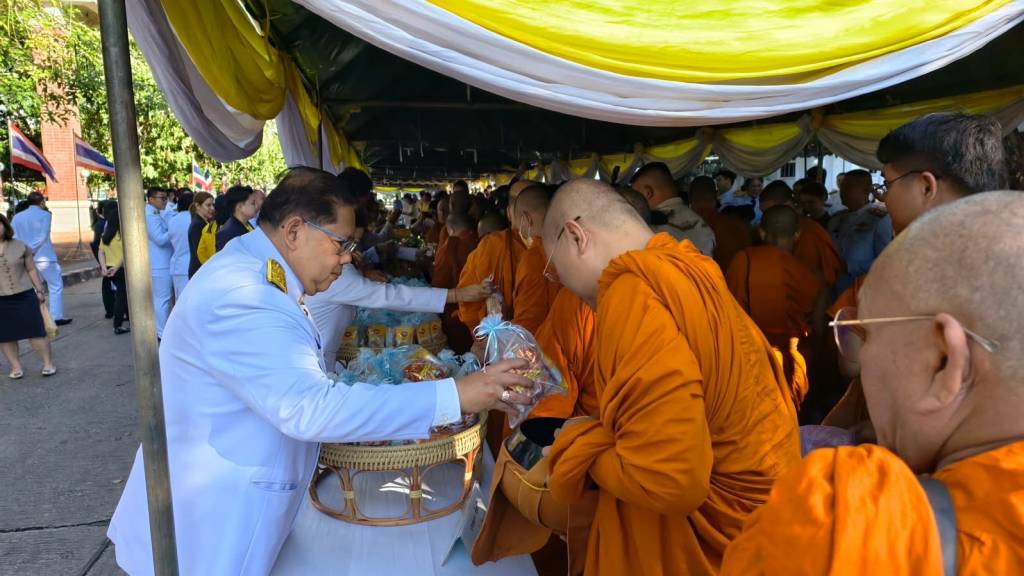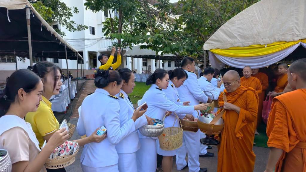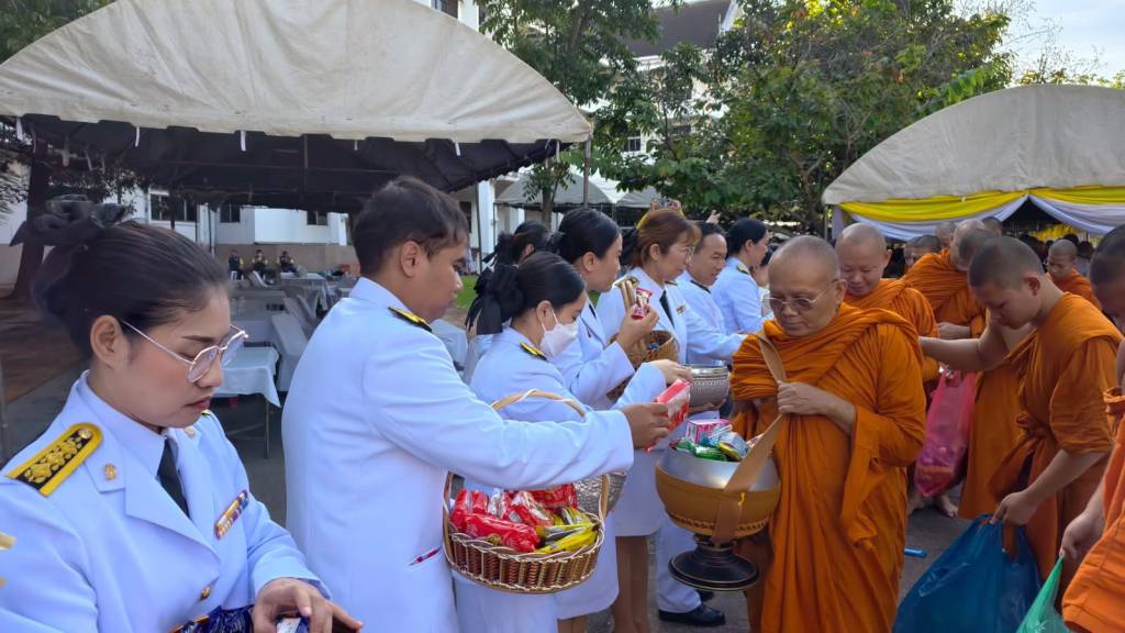 จังหวัดหนองคาย จัดพิธีทำบุญตักบาตรถวายพระราชกุศล และพิธีวางพวงมาลา เนื่องในวันนวมินทรมหาราช ประจำปี พ.ศ.2568 เพื่อเทิดพระเกียรติและน้อมรำลึกในพระมหากรุณาธิคุณอันหาที่สุดมิได้ที่พระองค์ทรงมีต่อพสกนิกรชาวไทย