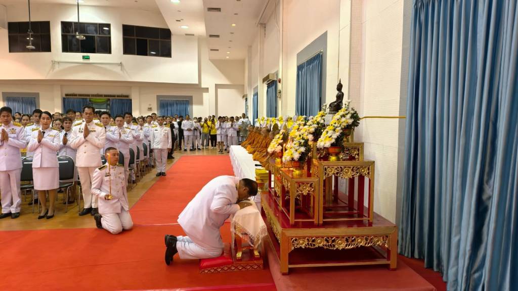 เมื่อช่วงเช้าวันนี้ (13 ต.ค. 68) ณ หอประชุมประจักษศิลปาคม ศาลากลางจังหวัดหนองคาย อ.เมืองหนองคาย จ.หนองคาย นายสมภพ สมิตะสิริ ผู้ว่าราชการจังหวัดหนองคาย เป็นประธานในพิธีทำบุญตักบาตรถวายพระราชกุศล และพิธีวางพวงมาลา เนื่องในวันนวมินทรมหาราช ประจำปี พ.ศ.2568 โดยมีพระศรีวชิรโมลี รองเจ้าคณะจังหวัดหนองคาย / เจ้าอาวาสวัดชัยพร เป็นประธานฝ่ายสงฆ์ และนำพระสงฆ์และสามเณร จำนวน 59 รูป รับบิณฑบาต