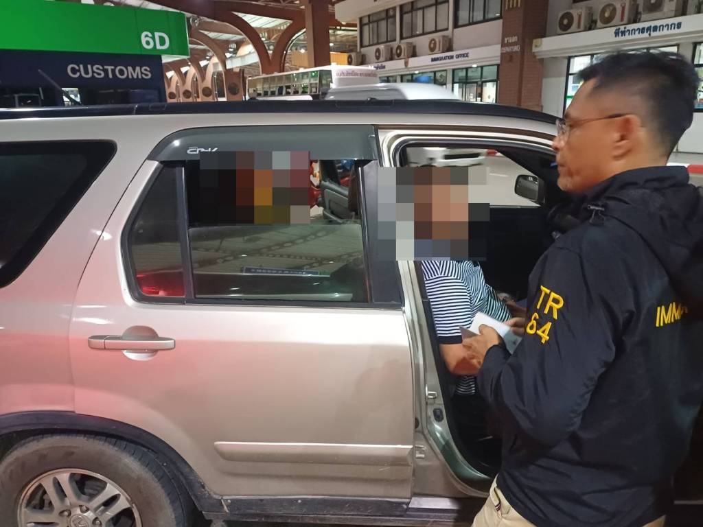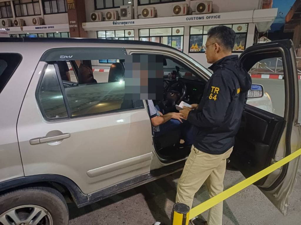 เมื่อมาถึงด่านตรวจคนเข้าเมืองหนองคาย ผู้ต้องหาที่ 2 และ Mr.Chinฯ ได้ให้ผู้ต้องหาที่ 1 รอบนรถ และลงไปตรวจลงตราพาสปอร์ตของตนเองและรถตามพิธีการคนเข้าเมือง เมื่อเสร็จสิ้นตามขั้นตอนแล้ว ได้ขับรถของกลางดังกล่าวผ่านจุดตรวจ เพื่อเดินทางไปยังประเทศลาว เมื่อถึงด่านฝั่งลาว ผู้ต้องหาที่ 2 ก็ยังคงให้ผู้ต้องหาที่ 1 หลบอยู่บนรถเช่นเดิมและได้นำพาสปอร์ตของผู้ต้องหาที่ 1 ไปยื่นขอรับการลงตรากับเจ้าหน้าที่ตรวจคนเข้าเมืองประเทศลาว หากแต่เมื่อได้เข้าไปทำการตรวจลงตราเจ้าหน้าที่ตรวจคนเข้าเมืองประเทศลาว ได้พบความผิดปกติของรอยตราประทับจากประสบการณ์ จึงทำการตรวจสอบโดยละเอียด และส่งตัวกลับมายังด่านตรวจคนเข้าเมืองหนองคายเพื่อทำการตรวจสอบ โดยตรวจคนเข้าเมืองหนองคาย ได้ทำการตรวจสอบแล้วเชื่อว่าน่าจะเป็นตราประทับปลอม หมายเลขตราประทับ L0046 ของเจ้าหน้าที่ตรวจคนเข้าเมืองหนองคาย โดยจากการสอบถามแล้วผู้ต้องหาที่ 2 ให้การยอมรับว่าจ้างจาก Mr.Tan Boon Hoong เป็นจำนวนเงิน 33,000 บาท
