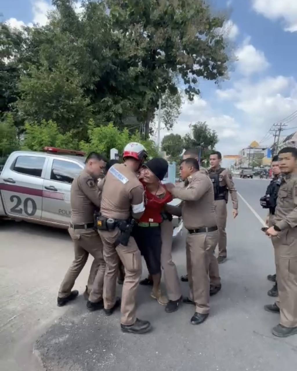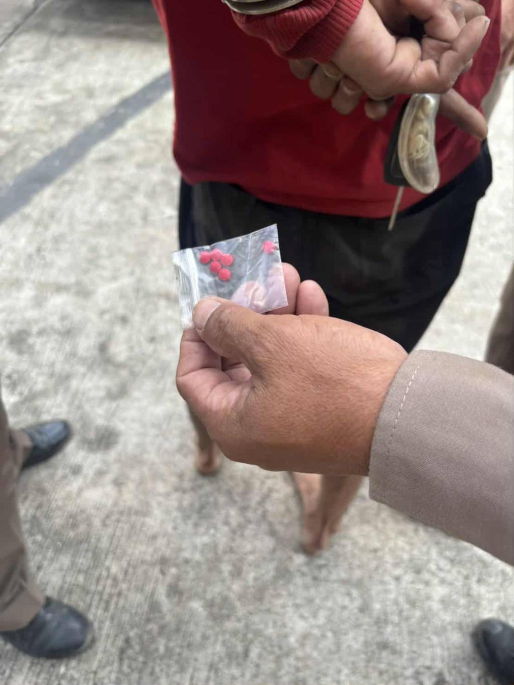 ต่อมาเจ้าหน้าที่จึงได้นำกำลังเข้าไประงับเหตุ แต่นายกวางได้ขัดขืนไม่ยอมให้เจ้าหน้าที่ควบคุมตัว พร้อมตะโกนให้ตำรวจไปช่วยตามหาเมียที่หนีไป เจ้าหน้าที่ตำรวจได้เข้าควบคุมตัวมาสงบสติอารมณ์ที่ สภ.ท่าบ่อ แต่ พ.ต.ท.อรรถวิทย์ กันยา รอง ผกก.ป.สภ.ท่าบ่อ สังเกตเห็นว่านายกวาง มีอาการคล้ายคนเสพยาเสพติดมา จึงได้ทำการตรวจค้นภายในร่างกายพบยาบ้าจำนวน 5 เม็ดซุกซ่อนอยู่ในกระเป๋ากางเกง แต่นายกวางที่อยู่ในอาการคลุ้มคลั่งไม่มีทีท่าว่าจะสงบสติอารมณ์ เจ้าหน้าที่จึงควบคุมตัวนำส่งโรงพยาบาลสมเด็จพระยุพราชท่าบ่อ เพื่อทำการรักษาและได้จัดเจ้าหน้าที่ตำรวจ สภ.ท่าบ่อ คอยดูแลอย่างใกล้ชิด