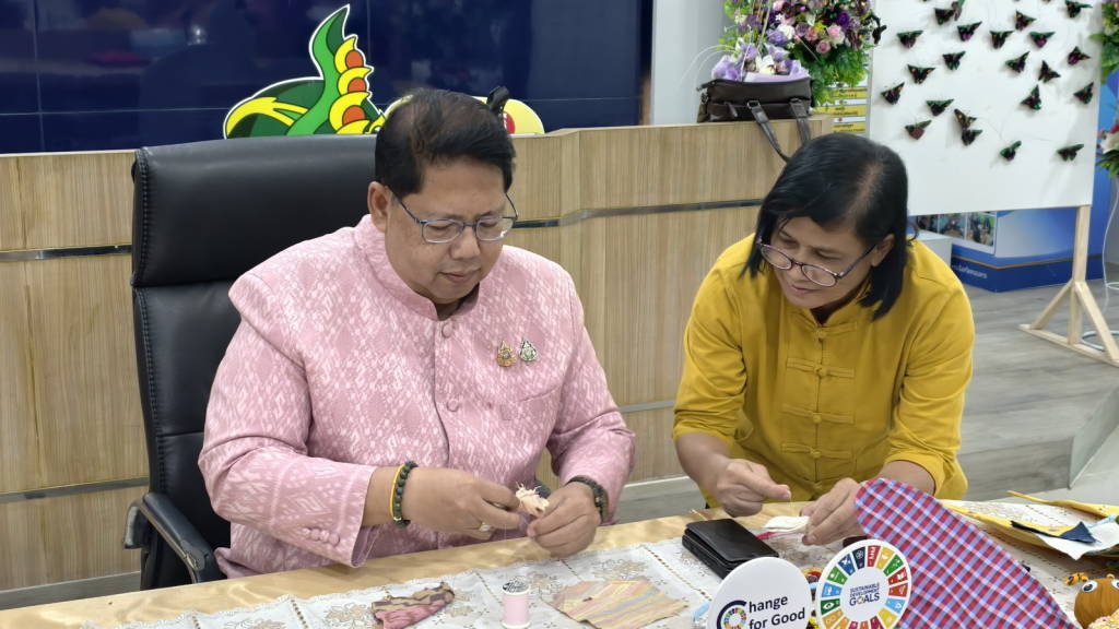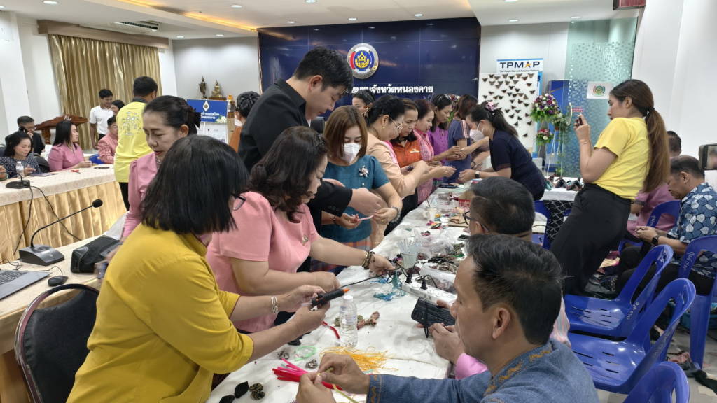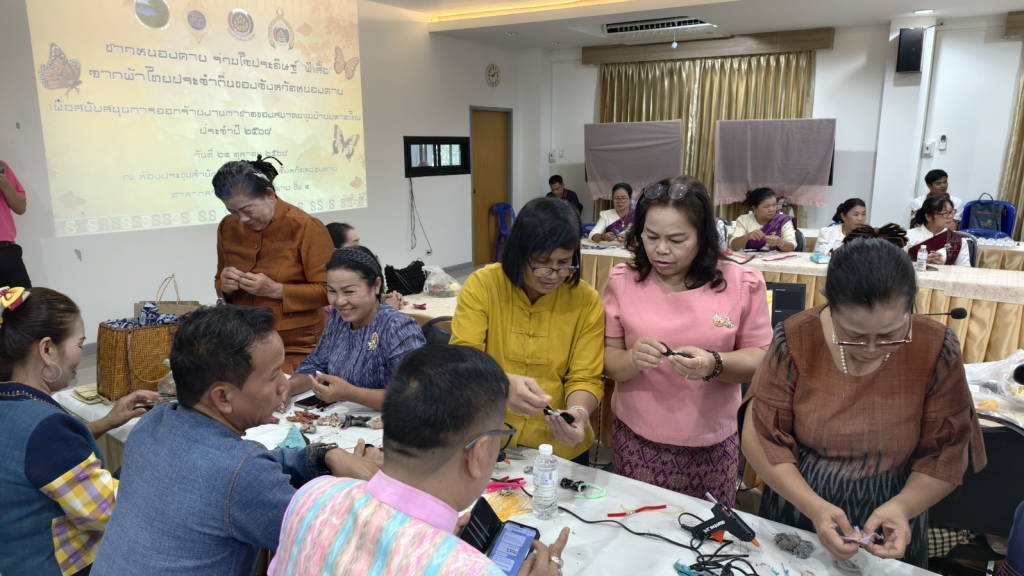 ผู้ว่าราชการจังหวัดหนองคาย ร่วมประดิษฐ์ผีเสื้อจากผ้าไทยประจำถิ่นของจังหวัด เพื่อสนับสนุนการออกร้านงานกาชาดของสมาคมแม่บ้านมหาดไทย ประจำปี 2568 ที่จัดขึ้น ณ สวนลุมพินี เขตปทุมวัน กรุงเทพมหานคร ในระหว่างวันที่ 11 – 21 ธันวาคม 2568 รวม 11 วัน 11 คืน
