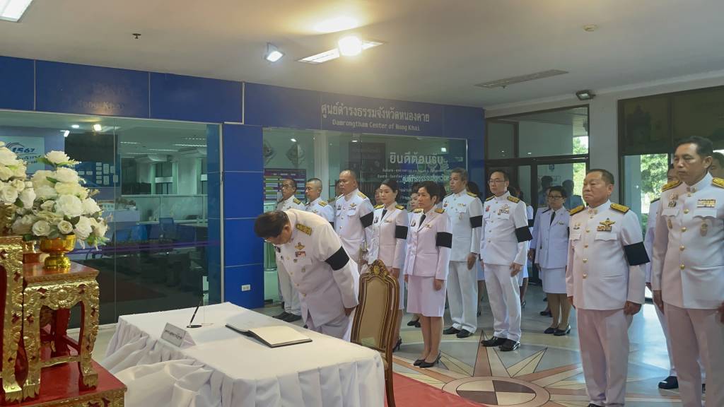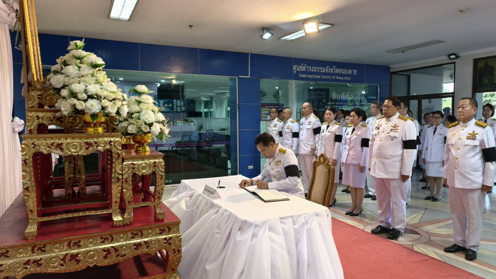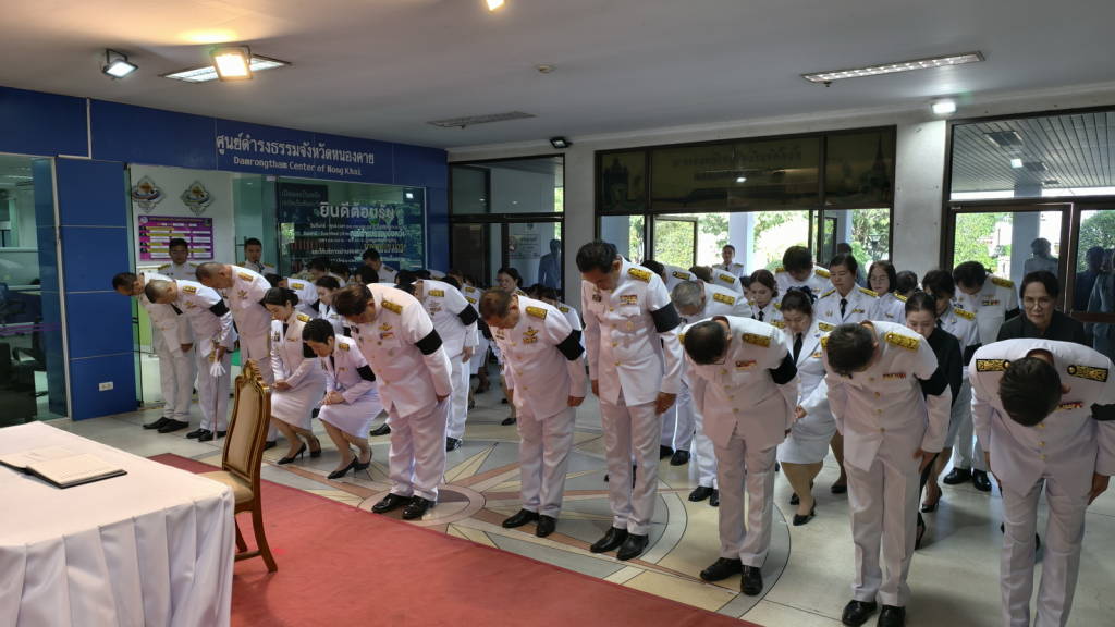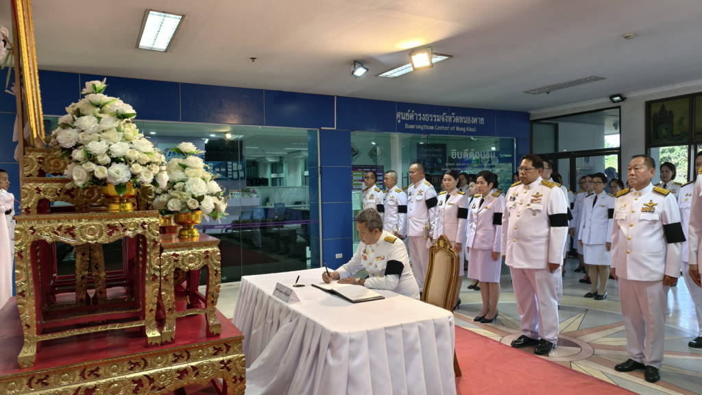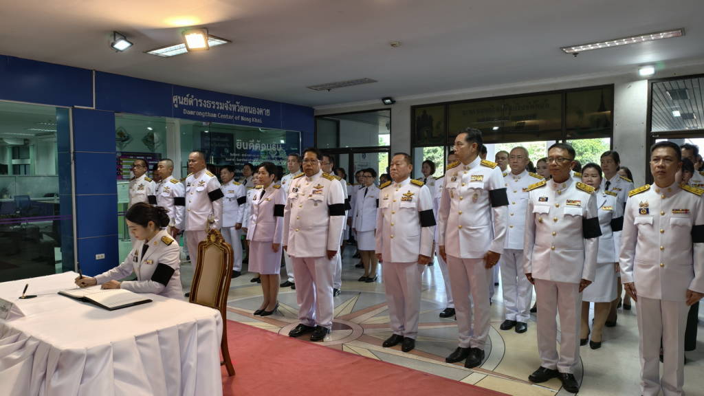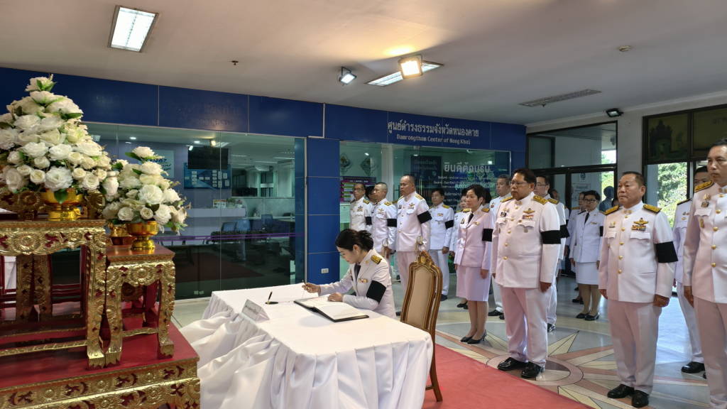 จังหวัดหนองคาย จัดพิธีลงนามถวายความอาลัย สมเด็จพระนางเจ้าสิริกิติ์ พระบรมราชินีนาถ พระบรมราชชนนีพันปีหลวง เบื้องหน้าพระฉายาลักษณ์ ณ บริเวณห้องโถงชั้น 1 ศาลากลางจังหวัดหนองคาย