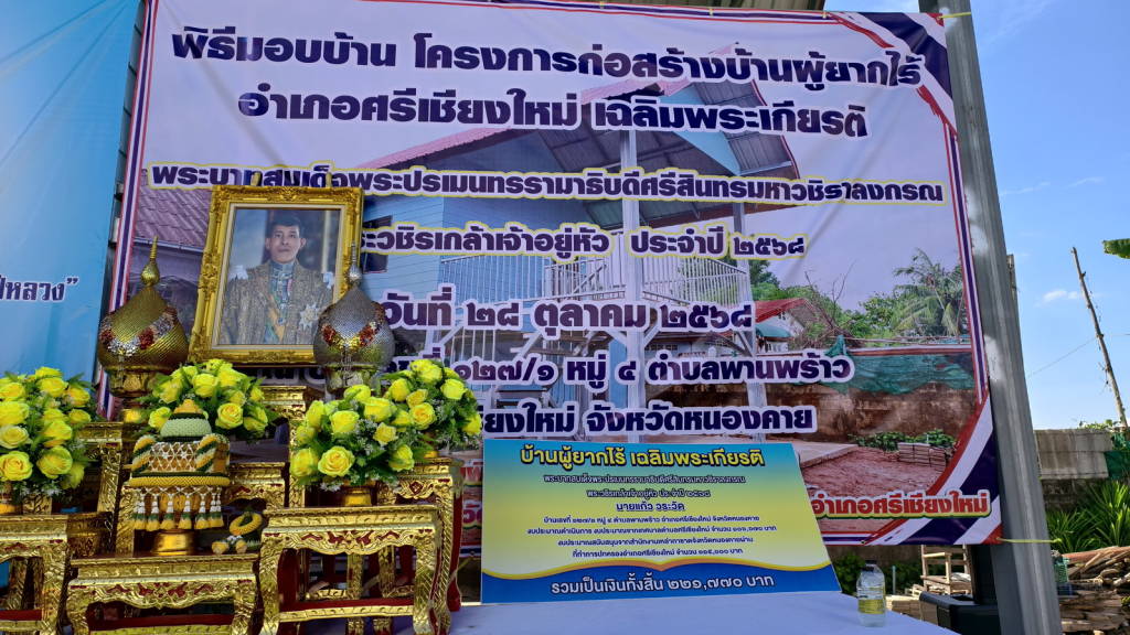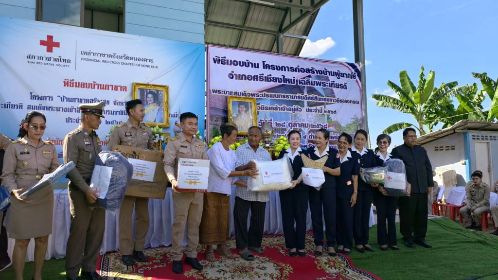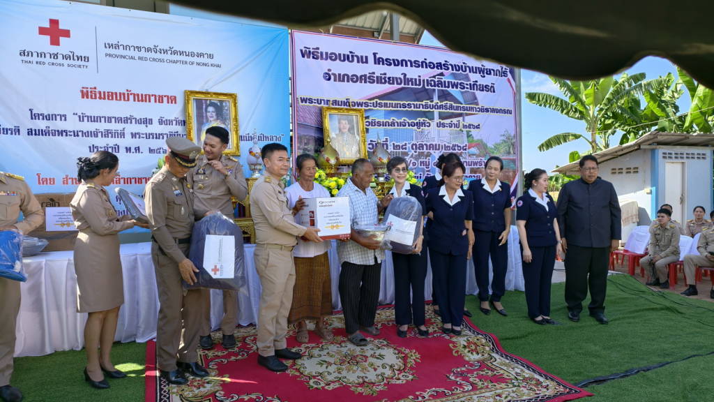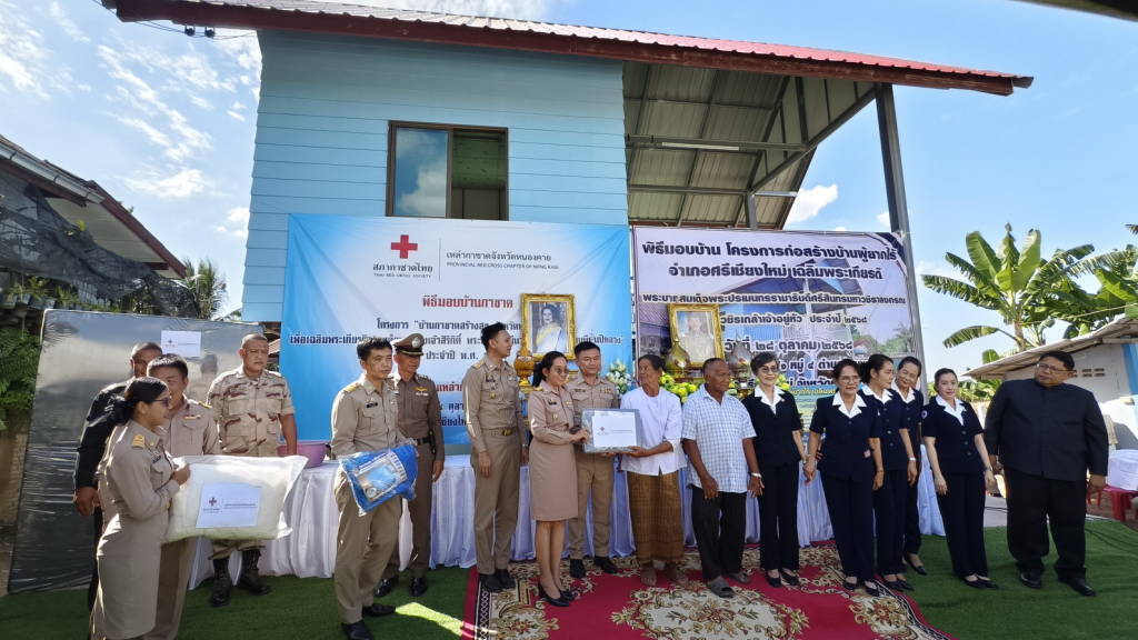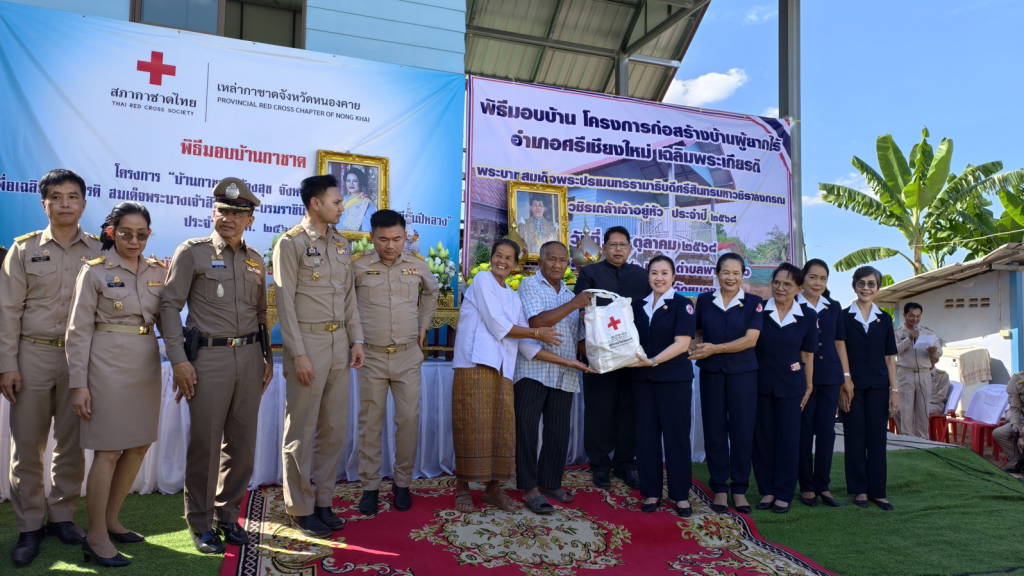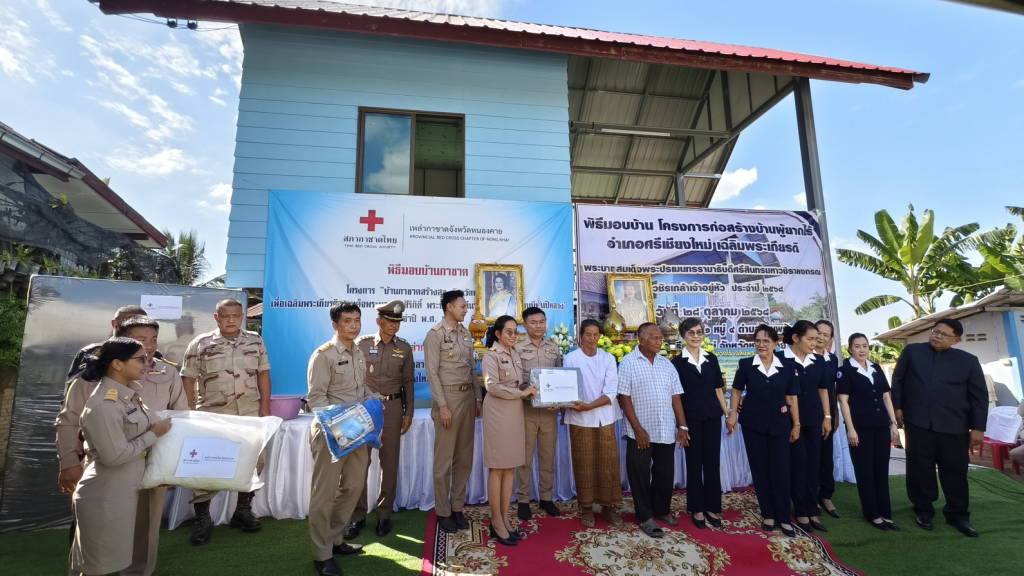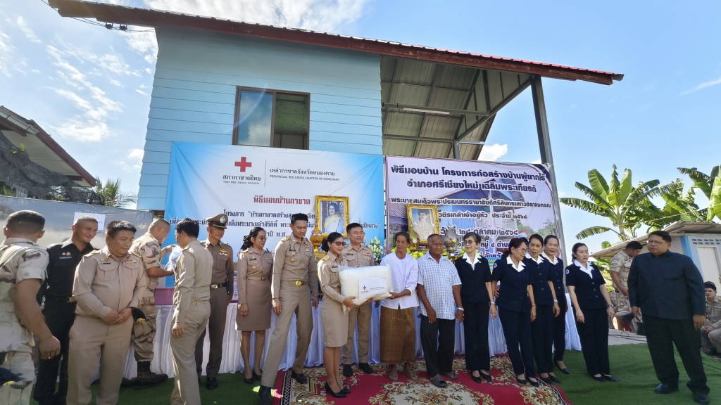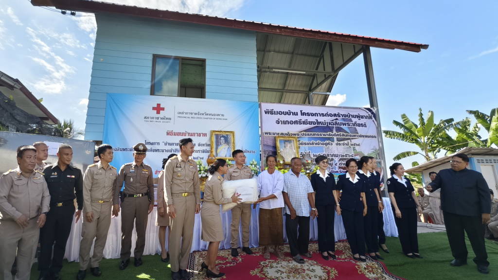 ผู้ว่าราชการจังหวัดหนองคาย พร้อมเหล่ากาชาดจังหวัดหนองคาย มอบบ้านให้กับประชาชนผู้มีฐานะยากจน ให้มีบ้านพักอาศัยที่มั่นคงถาวร ในพื้นที่ ตำบลพานพร้าว อำเภอศรีเชียงใหม่ จังหวัดหนองคาย ตามโครงการ “บ้านกาชาดสร้างสุขจังหวัดหนองคาย เพื่อเฉลิมพระเกียรติ สมเด็จพระนางเจ้าสิริกิติ์ พระบรมราชินีนาถ พระบรมราชชนนีพันปีหลวง ประจำปี พ.ศ.2568 และโครงการก่อสร้างบ้านผู้ยากไร้เฉลิมพระเกียรติ พระบาทสมเด็จพระปรเมนทรรามาธิบดีศรีสินทรมหาวชิราลงกรณ พระวชิรเกล้าเจ้าอยู่หัว ประจำปี 2568