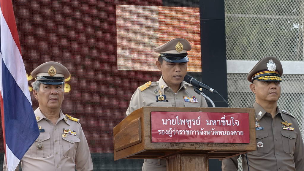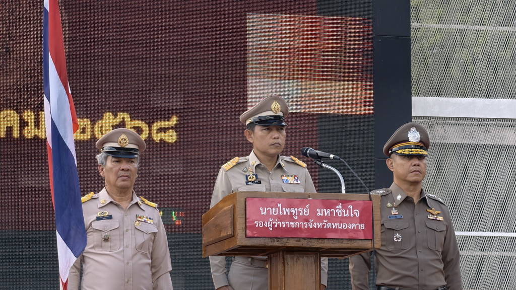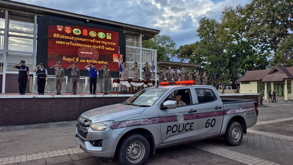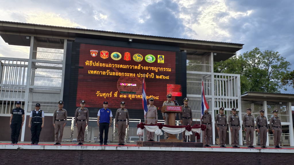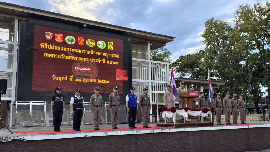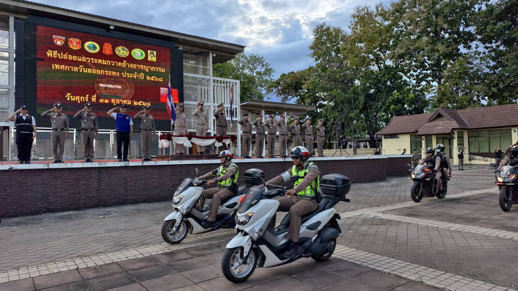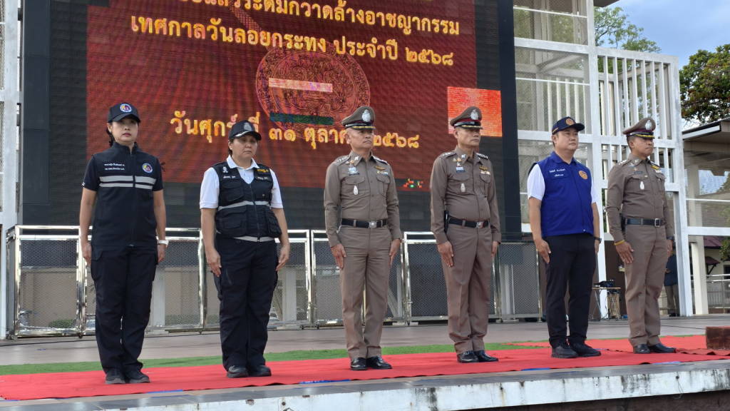 เมื่อเวลา 16.00 น.วันนี้ (31 ต.ค. 68)ณ บริเวณลานเฉลิมพระเกียรติสมเด็จพระเทพรัตน์ราชสุดาฯ สยามบรมราชกุมารี 60 พรรษา อ.เมืองหนองคาย จ.หนองคาย นายไพฑูรย์ มหาชื่นใจ รองผู้ว่าราชการจังหวัดหนองคาย เป็นประธานในพิธีปล่อยแถวกวาดล้างอาชญากรรมเทศกาลลอยกระทง ประจำปี 2568 ที่จังหวัดหนองคาย โดย สภ.เมืองหนองคาย บูรณาการร่วมกับทุกฝ่าย จัดให้มีขึ้น มี พล.ต.ต.อัทธชนม์ ช่วงงาม ผู้บังคับการตำรวจภูธรจังหวัดหนองคาย , ผู้กำกับการ สภ.ในสังกัดตำรวจภูธรจังหวัดหนองคาย , เจ้าหน้าที่ตำรวจ , ตม.หนองคาย , เจ้าหน้าที่ฝ่ายปกครอง , กอ.รมน.หนองคาย , เทศบาลเมืองหนองคาย และหน่วยงานที่เกี่ยวข้อง เข้าร่วมอย่างพร้อมเพรียง