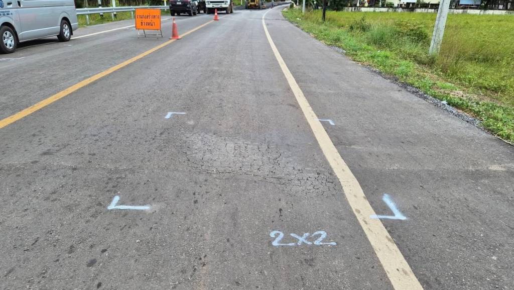 จากการลงพื้นที่ดำเนินโครงการฯ พบว่า ถนนชำรุดจำนวน 11 จุด ซึ่งจะดำเนินการซ่อมเฉพาะจุด และบริเวณถนนชำรุดที่ กม.18+450 ระยะทาง 100 เมตร (ตามที่เป็นข่าว) ผู้รับจ้างได้นำเครื่องจักร มาดำเนินการซ่อมแซมในวันที่ลงพื้นที่แล้ว โดยดำเนินการรื้อโครงสร้างเดิมออกก่อน และบดอัดดินหินชั้นล่างเพื่อให้เกิดความแข็งแรงยิ่งขึ้น สำหรับสาเหตุปัจจัยที่ทำให้ถนนชำรุดอาจเกิดจาก การใช้งานที่มีรถบรรทุกหนักวิ่งสัญจรบนถนน ทั้งนี้ โครงการดังกล่าวยังอยู่ในช่วงระยะประกันสัญญา โดยสำนักงาน ป.ป.ช. ประจำจังหวัดหนองคาย ได้ให้คำแนะนำแก่แขวงทางหลวงชนบทหนองคายให้เฝ้าระวังตามมาตรการรถบรรทุกน้ำหนักเกิน โดยบูรณาการตั้งด่านตรวจชั่งน้ำหนัก พร้อมทั้งประสานไปยังหน่วยงานที่มีส่วนเกี่ยวข้องเพื่อร่วมเฝ้าระวังต่อไป และหากผู้รับจ้างดำเนินการแก้ไขแล้วเสร็จแล้ว สำนักงาน ป.ป.ช. ประจำจังหวัดหนองคาย จะดำเนินการติดตามอีกครั้งในลำดับต่อไป