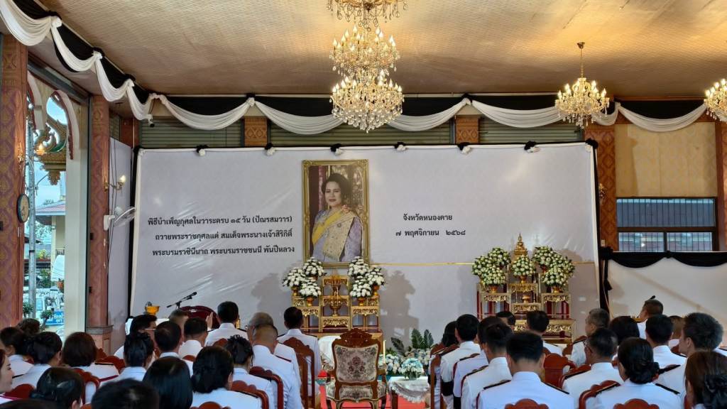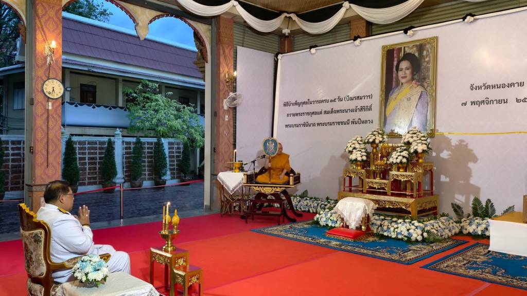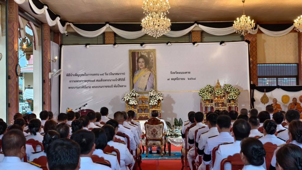 เมื่อเวลา 17.00 น.วันนี้ (7 พ.ย. 68) ณ พลับพลาหลวงพ่อพระใส วัดโพธิ์ชัย พระอารามหลวง อ.เมืองหนองคาย จ.หนองคาย จังหวัดหนองคาย ได้จัดให้มีพิธีบำเพ็ญกุศล ในวาระครบ 15 วัน (ปัณรสมวาร) เพื่ออุทิศถวายพระราชกุศลแด่ สมเด็จพระนางเจ้าสิริกิติ์ พระบรมราชินีนาถ พระบรมราชชนนีพันปีหลวง โดยมีนายสมภพ สมิตะสิริ ผู้ว่าราชการจังหวัดหนองคาย เป็นประธานในพิธีฯ พระเทพวชิรคุณ เจ้าคณะจังหวัดหนองคาย / เจ้าอาวาสวัดโพธิ์ชัย เป็นประธานฝ่ายสงฆ์ มีนายจำลักษ์ กันเพ็ชร์ รองผู้ว่าราชการจังหวัดหนองคาย , นายไพฑูรย์ มหาชื่นใจ รองผู้ว่าราชการจังหวัดหนองคาย หัวหน้าส่วนราชการ อัยการ ศาล ทหาร ตำรวจ และพสกนิกรทุกหมู่เหล่าเข้าร่วมพิธีฯ อย่างพร้อมเพรียง