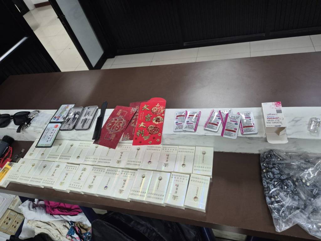จากการตรวจสอบ ทราบชื่อ คือ MR.ZENG LINGDI อายุ 24 ปี สัญชาติจีน และจากการตรวจค้นกระเป๋าสัมภาระ พบสิ่งของต้องห้ามนำเข้ามาในราชอาณาจักร (ของกลาง) หลายรายการ ประกอบด้วยบุหรี่ ยี่ห้อ HUANGHELOU จำนวน 26 ซอง (ซองละ 20 มวน รวม 520 มวน) พบที่กระเป๋าเป้สีดำ , ยาปลุกอารมณ์ทางเพศ ยี่ห้อ LOVEGRA ORAL JELLY จำนวน 1 กล่อง (จำนวน 6 ซอง) , หัวพ็อตบุหรี่ไฟฟ้า สีใส จำนวน 103 หัว และตัวเสียบหัวพ็อตบุหรี่ไฟฟ้า จำนวน 103 หัว