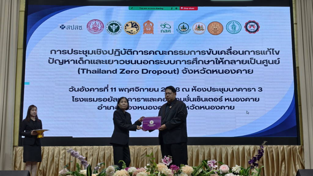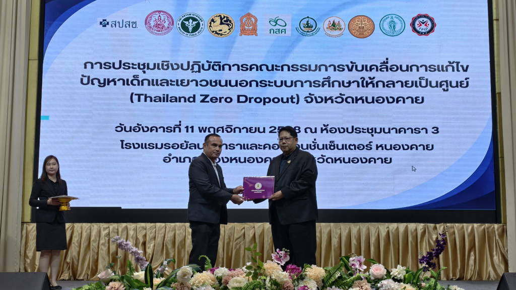 จังหวัดหนองคาย จัดประชุมเชิงปฏิบัติการคณะกรรมการขับเคลื่อนการแก้ไขปัญหาเด็กและเยาวชนนอกระบบการศึกษาให้กลายเป็นศูนย์ จังหวัดหนองคาย เพื่อให้คณะกรรมการฯ สามารถปฏิบัติหน้าที่เป็นกลไกหลักในการขับเคลื่อนการแก้ไขปัญหาเด็กและเยาวชนนอกระบบการศึกษาของจังหวัด
