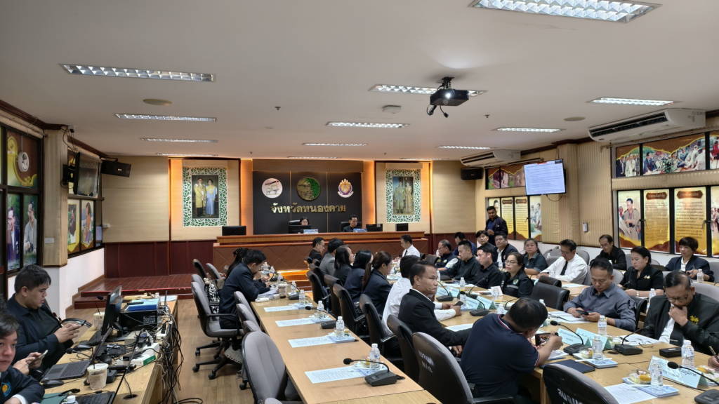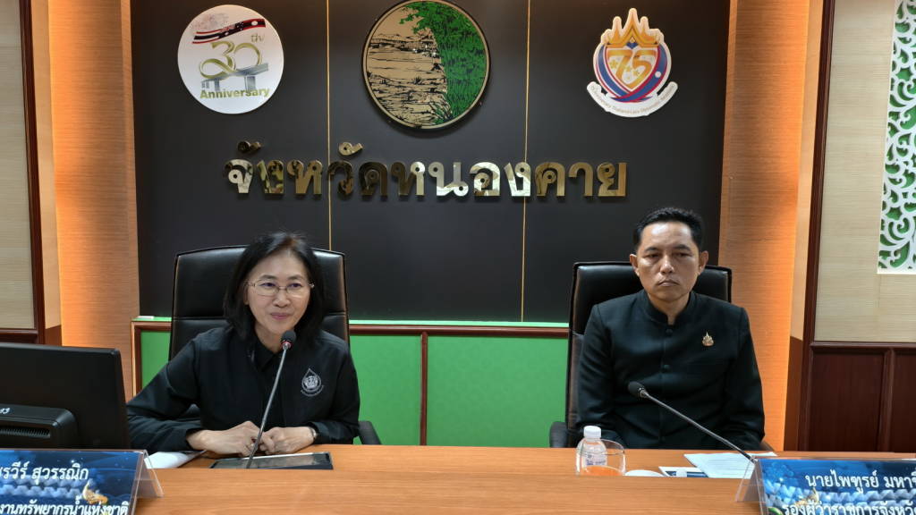 วันนี้ (12 พฤศจิกายน 2568) ณ ห้องประชุมปทุมเทวาภิบาล ศาลากลางจังหวัดหนองคาย นางพัชรวีร์ สุวรรณนิก รองเลขาธิการสำนักงานทรัพยากรน้ำแห่งชาติ (สทนช.) เป็นประธานการประชุมคณะทำงานอำนวยการบริหารจัดการน้ำส่วนหน้า (ชั่วคราว) ในพื้นที่เสี่ยงอุทกภัยลุ่มน้ำโขงตะวันออกเฉียง เหนือ ครั้งที่ 7/2568 โดยมี นายไพฑูรย์ มหาชื่นใจ รองผู้ว่าราชการจังหวัดหนองคาย ให้การต้อนรับ ผู้เข้าร่วมประชุมและผ่านสื่ออิเล็กทรอนิกส์ประกอบด้วย ผู้แทนจากหน่วยงานต่าง ๆ ในพื้นที่ ได้แก่ จังหวัดหนองคาย จังหวัดอุดรธานี จังหวัดเลย จังหวัดบึงกาฬ กรมชลประทาน กรมอุตุนิยมวิทยา กรมป้องกันและบรรเทาสาธารณภัย กรมโยธาธิการและผังเมือง กรมประชาสัมพันธ์ เป็นต้น
