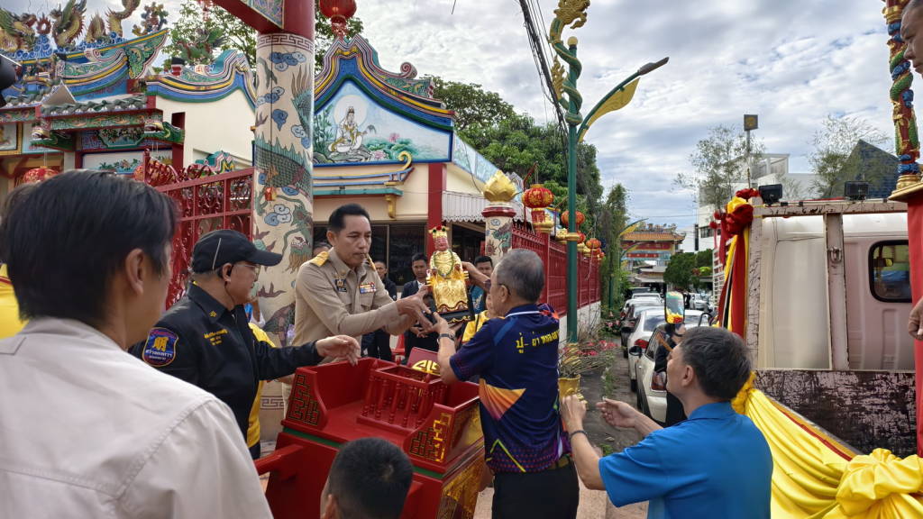 เมื่อช่วงเช้าวันนี้ (20 พ.ย. 68) ที่ ศาลเจ้าปู่-ย่า หนองคาย อ.เมือง จ.หนองคาย นายศรัณศักด์ ศรีเครือเนตร ผู้ว่าราชการจังหวัดหนองคาย เป็นประธานในพิธีอัญเชิญองค์เจ้าปู่-ย่า เทพเจ้า เทพธิดา ออกจากศาลเจ้าปู่-ย่า หนองคาย พร้อมด้วย บรรดาเซียนต่าง ๆ ขึ้นรถแห่รอบเมืองไปตามถนนประจักษ์ศิลปาคม และ ถนนมีชัย ผ่านร้านต่าง ๆ เพื่อให้เกิดความเป็นสิริมงคล ขจัดปัดเป่าสิ่งไม่ดีทั้งหลาย และให้การค้าขายเจริญรุ่งเรือง ก่อนอัญเชิญไปประทับที่ศาลเจ้าชั่วคราวบริเวณโรงเรียนฮั่วเคียวกงฮัก หรือโรงเรียนจีนกลางเมืองหนองคาย เพื่อให้ประชาชนได้กราบไหว้ โดยมีนายไพฑูรย์ มหาชื่นใจ รองผู้ว่าราชการจังหวัดหนองคาย ,พล.ต.ต.อัทธชนม์ ช่วงงาม ผบก.ภ.จว.หนองคาย , นายวุฒิไกร ช่างเหล็ก นายก อบจ.หนองคาย , นายอรรถพร ภักดีสุจริต นายกเทศมนตรีเมืองหนองคาย และคณะกรรมการศาลเจ้าปู่ย่า จังหวัดหนองคาย สมัยที่ 74/2568 , หัวหน้าส่วนราชการ ข้าราชการ ภาครัฐ เอกชน คณะกรรมการศาลเจ้าปู่-ย่า หนองคาย สมัยที่ 74/2568 พ่อค้า และประชาชนทั่วไป ร่วมกันอัญเชิญองค์เจ้าปู่-ย่า อย่างพร้อมเพรียง