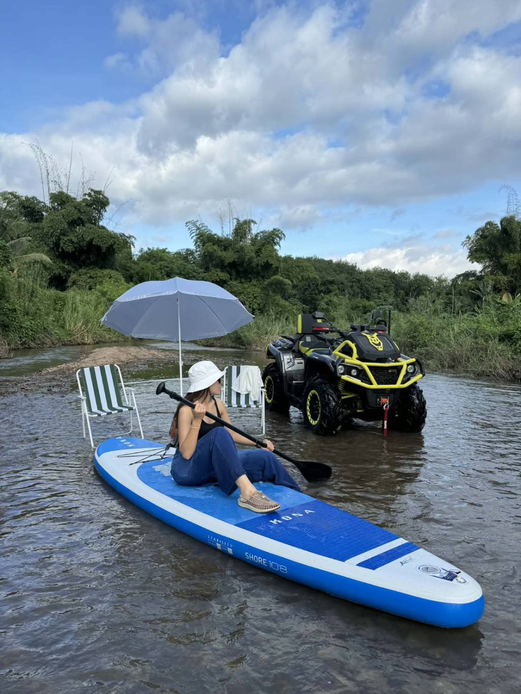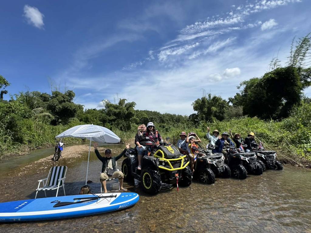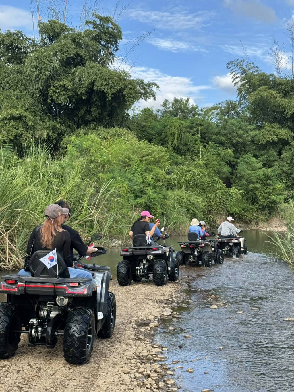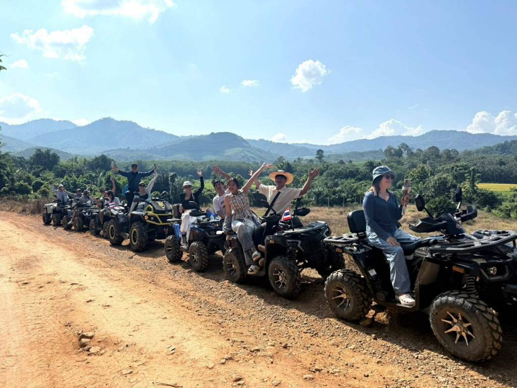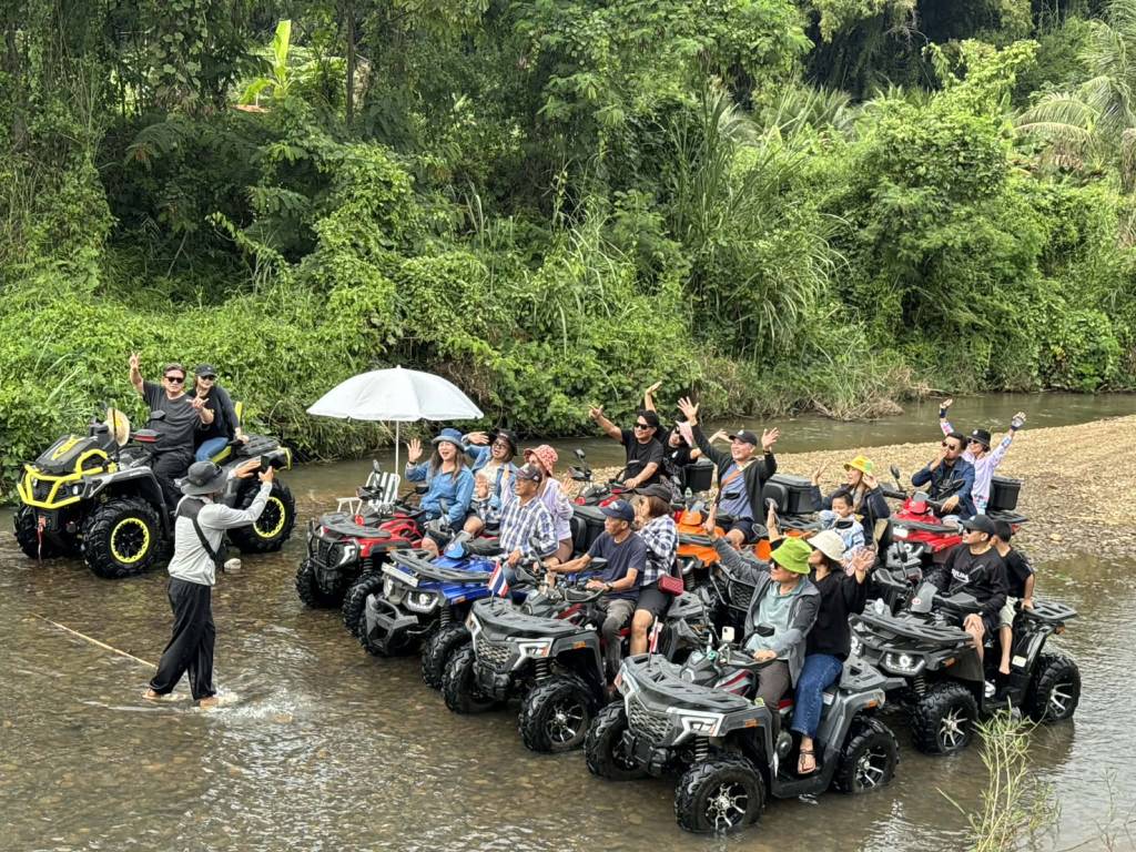 คุณณัฐพล มังกรเงิน ได้นำผู้สื่อข่าวขึ้นรถ ATV โดยกิจกรรมครั้งนี้เริ่มต้นจากจุดสตาร์ท “ATVนางิ้วXอิงธารคาเฟ่” ใน ตำบลนางิ้ว โดยขับผ่านเส้นทางห้วยน้ำพร้าว และห้วยน้ำฮวย สวนยางพารา และสวนผลไม้ของชาวบ้าน ท่ามกลางธรรมชาติสองฝั่งทางที่ยังอุดมสมบูรณ์ ทั้งการลุยน้ำ ลำธาร และเส้นทางสูงชันที่เพิ่มความตื่นเต้นตลอดระยะเวลาประมาณ 2 ชั่วโมง โดยมีทีมงานดูแลความปลอดภัยอย่างใกล้ชิด โดยนักท่องเที่ยวยังได้แวะพักตามลำห้วยที่มีน้ำไหล ใสสะอาด บางช่วงเป็นเสมือนน้ำตกที่สวยงาม สามารถถ่ายรูปสวยๆได้ทุกจุด