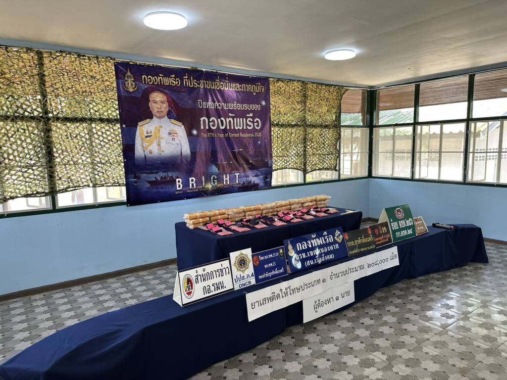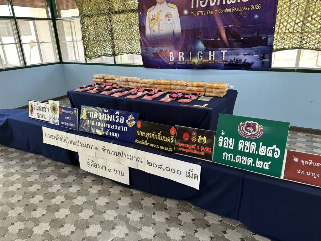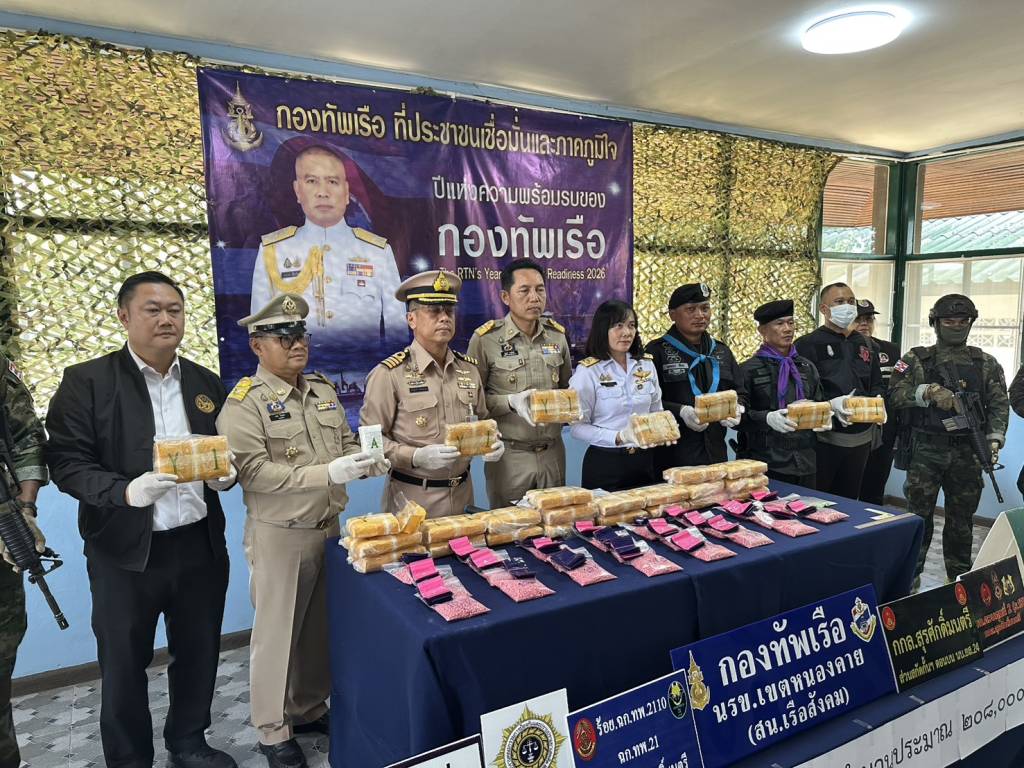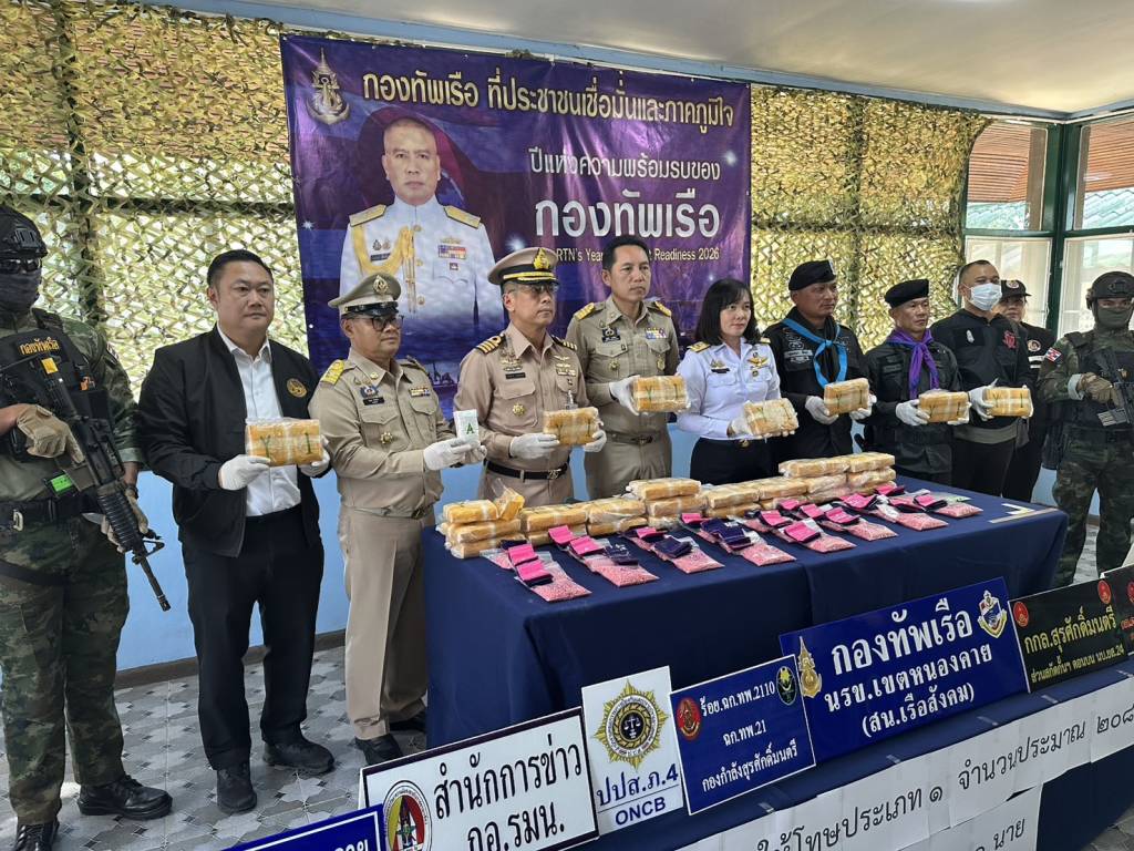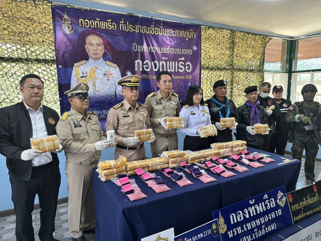 วันนี้ (27 พ.ย. 68) เวลา 14.30 น. ที่สถานีเรือสังคม (นรข.เขตหนองคาย) ต.สังคม อ.สังคม จ.หนองคาย นายไพฑูรย์ มหาชื่นใจ รองผู้ว่าราชการจังหวัดหนองคาย ,น.อ.วิศิษฐ์พงศ์ เจริญวิชยเดช ผบ.นรข.เขตหนองคาย ,นายนวน โทบุตร นายอำเภอสังคม ,ร.อ.ไพรสน พลเสน หัวหน้าสถานีเรือสังคม (นรข.เขตหนองคาย) ,ร.อ.ยุทธณา สีไชย์ ผู้บังคับกองร้อยเฉพาะกิจทหารพรานที่ 2110 หน่วยเฉพาะกิจทหารพรานที่ 21 ,นางสาววรรณา ผู้อุตส่าห์ นายด่านศุลกากรหนองคาย , พร้อมหน่วยงานที่เกี่ยวข้อง ร่วมกันแถลงข่าวตรวจยึดยาบ้า จำนวน 208,000 เม็ด พร้อมผู้ต้องหา นายวีระพล อุดม อายุ 27 ปี อยู่บ้านเลขที่ 12 ม.1 ต.นางัว อ.น้ำโสม จ.อุดรธานี