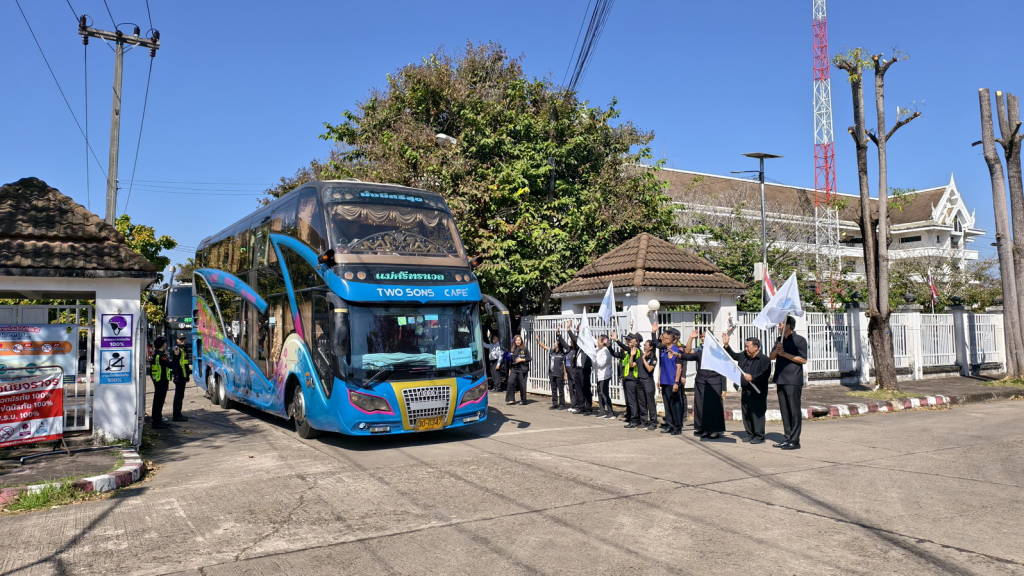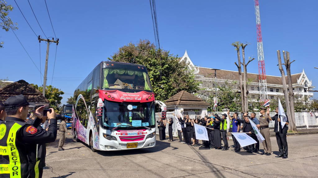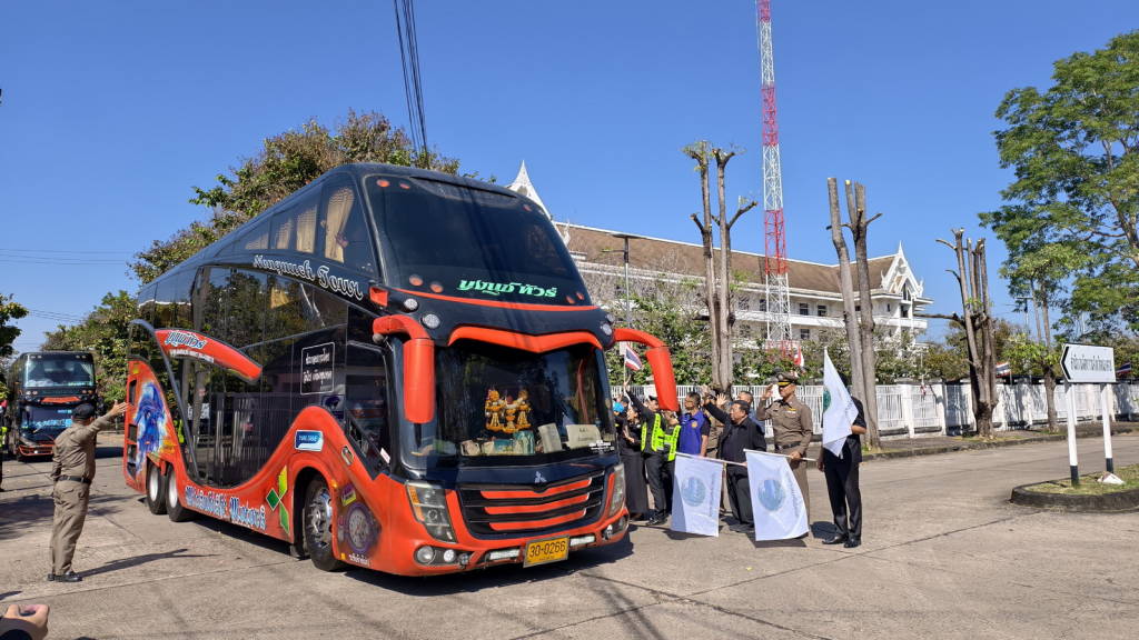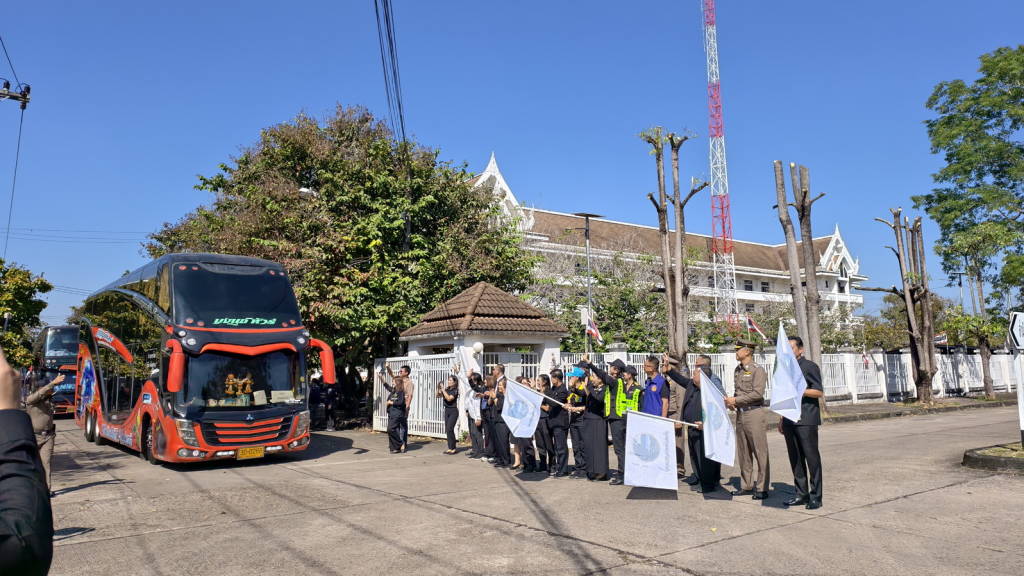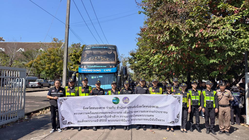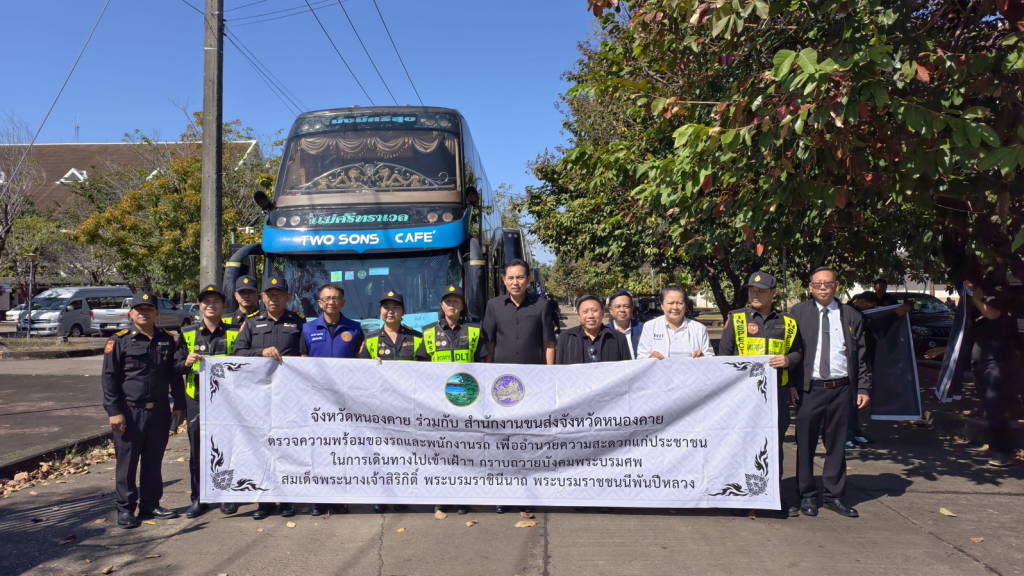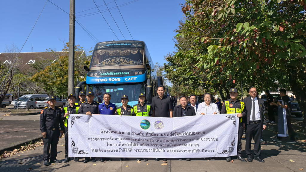 จากนั้นเวลา 12.30 น. นายไพฑูรย์ มหาชื่นใจ รองผู้ว่าราชการจังหวัดหนองคาย , นายพิเชษฐศ์ ตันเทอดทิตย์ รองนายก อบจ.หนองคาย , นายประทีป อุ่ยเจริญ ปลัดจังหวัดหนองคาย , นางศศิธร อาภรณ์ธนกุล ขนส่งจังหวัดหนองคาย , นายเดชมนตรี ผิวเหลือง ป้องกันจังหวัดหนองคาย พร้อมหัวหน้าส่วนราชการ หน่วยงาน ในจังหวัดหนองคาย ได้ร่วมกันส่งขบวนรถที่นำเข้าร่วมโครงการฯ ไปเข้าเฝ้าฯ กราบถวายบังคมพระบรมศพ และศึกษาเรียนรู้พระราชกรณียกิจ สมเด็จพระนางเจ้าสิริกิติ์ พระบรมราชินีนาถ พระบรมราชชนนีพันปีหลวง ซึ่งจังหวัดหนองคาย ได้มีการจัดรถออกเป็น 2 ขบวน ๆ ละ 9 คัน รวม 18 คัน แต่ละขบวนมีรถนำและรถปิดท้ายขบวน รถแต่ละคันมีเจ้าหน้าที่ที่เกี่ยวข้องประจำรถทุกคัน ในส่วนของพนักงานขับรถก็ได้ผ่านการตรวจแอลกอฮอล์ตรวจปัสสาวะเพื่อหาสารเสพติดทุกคน นอกจากนี้รถทุกคันต้องผ่านการตรวจสภาพมาแล้วไม่เกิน 30 วัน อีกทั้งยังจะมีการตรวจสภาพรถทุกคันเป็นระยะ ๆ ตลอดเส้นทางทั้งไปและกลับ เพื่อให้การเดินทางมีความปลอดภัยมากที่สุด.