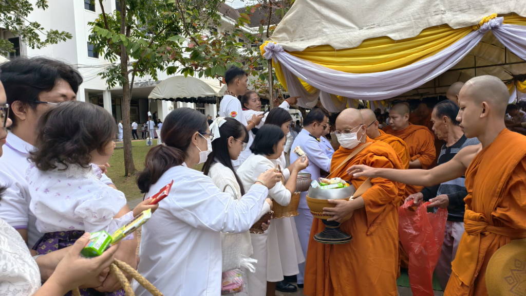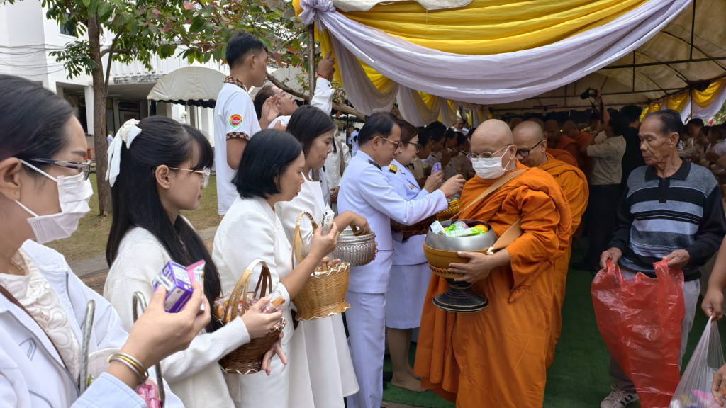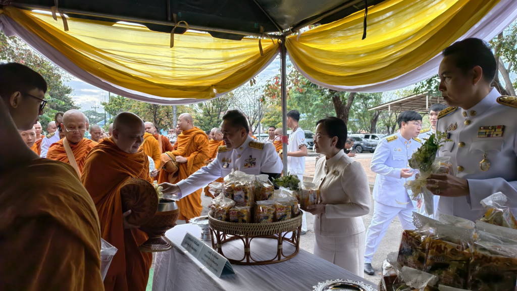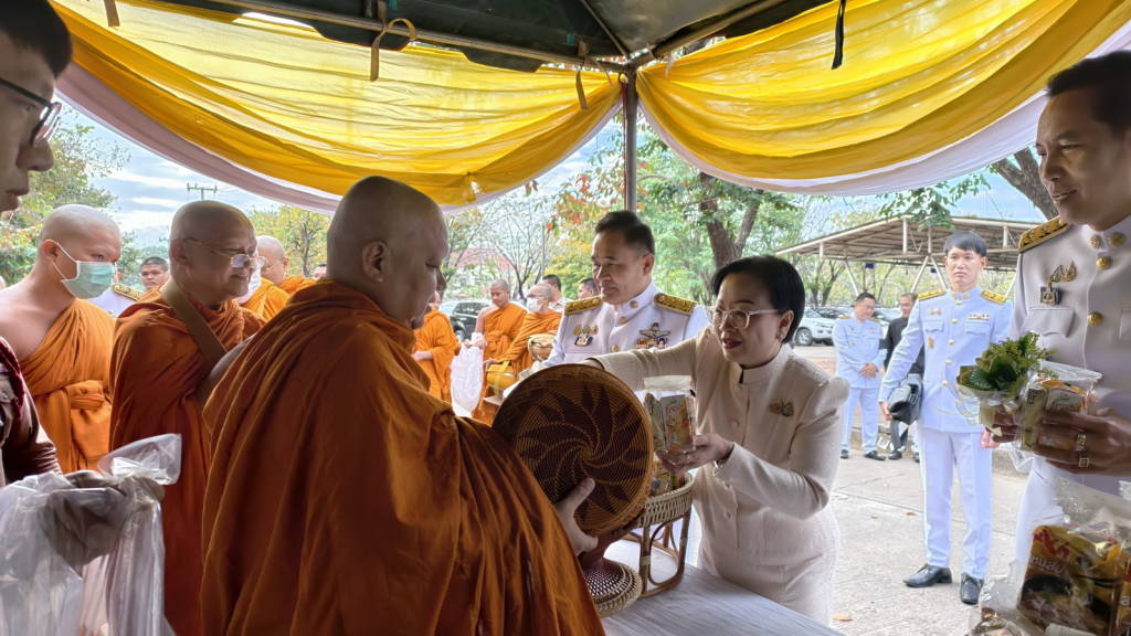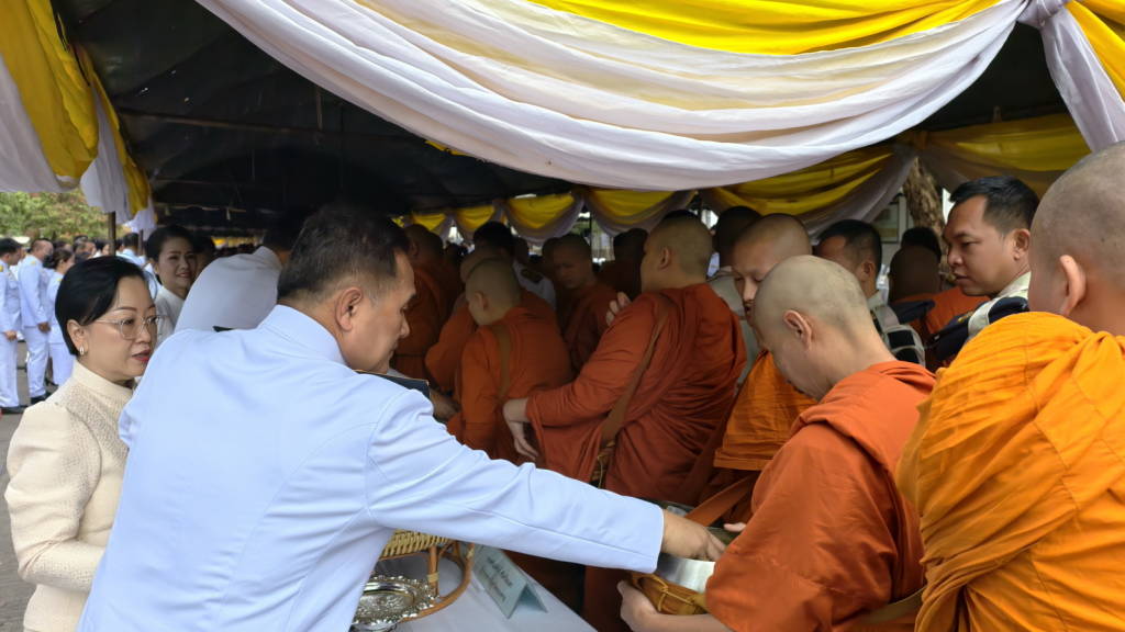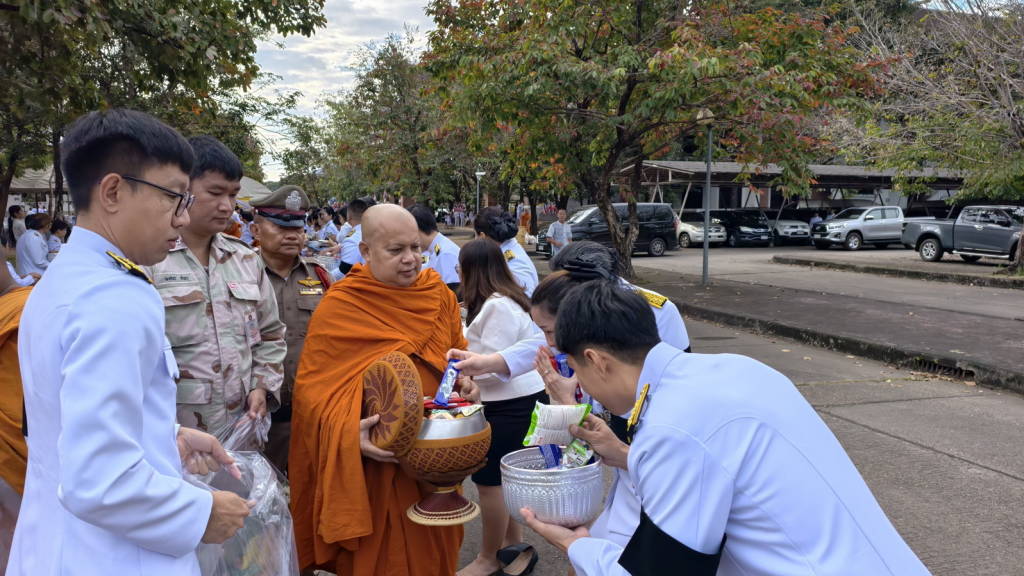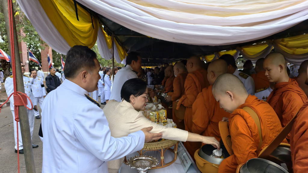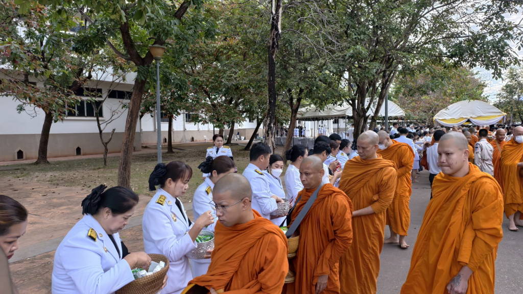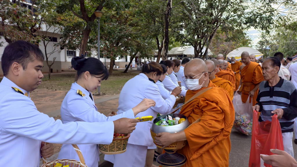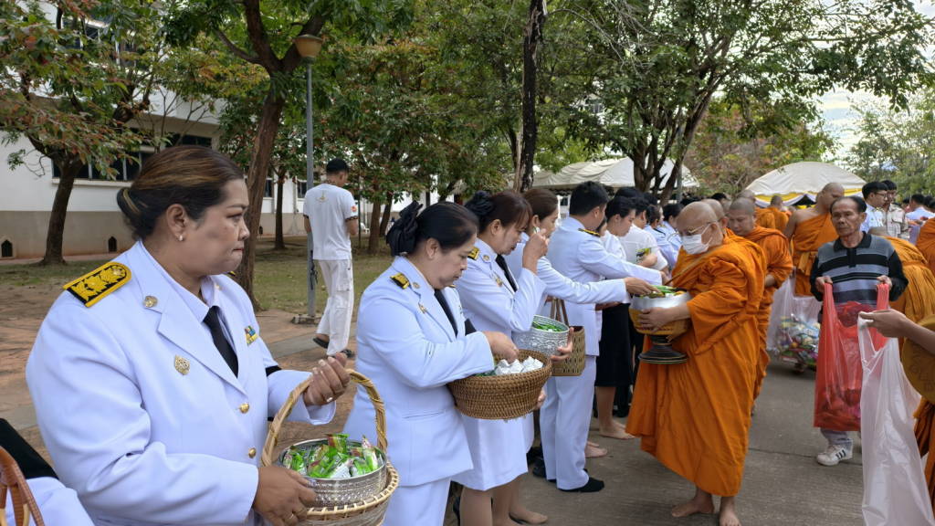 กิจกรรมฯเริ่มจากพิธีเจริญพระพุทธมนต์และพิธีทำบุญตักบาตรถวายพระราชกุศล มีพระศรีวชิรโมลี รองเจ้าคณะจังหวัดหนองคาย เป็นประธานฝ่ายสงฆ์ พร้อมนำพระสงฆ์และสามเณร จำนวน 59 รูป ออกรับบิณฑบาต