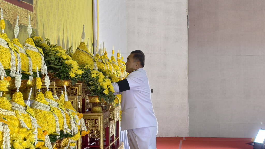 หลังเจริญพระพุทธมนต์และพิธีทำบุญตักบาตร ก็จะจัดให้มีพิธีวางพุ่มดอกไม้ถวายบังคมเบื้องหน้าพระฉายาลักษณ์ พระบาทสมเด็จพระบรมชนกาธิเบศร มหาภูมิพลอดุลยเดชมหาราช บรมนาถบพิตร โดยพิธีเริ่มจากหัวหน้าส่วนราชการ หน่วยงานรัฐวิสาหกิจ องค์กรปกครองส่วนท้องถิ่น ภาคเอกชน และภาคประชาชน วางพานพุ่มดอกไม้ ตามลำดับ จากนั้นผู้ว่าราชการจังหวัดหนองคาย ประธานในพิธีฯ ได้วางพานพุ่มดอกไม้ หน้าพระบรมฉายาลักษณ์พระบาทสมเด็จพระบรมชนกาธิเบศร มหาภูมิพลอดุลยเดชมหาราช บรมนาถบพิตร กล่าวน้อมรำลึกในพระมหากรุณาธิคุณฯ และนำผู้เข้าร่วมพิธีถวายบังคมหน้าพระบรมฉายาลักษณ์พระบาทสมเด็จพระบรมชนกาธิเบศร มหาภูมิพลอดุลยเดชมหาราช บรมนาถบพิตร เป็นอันเสร็จพิธี.