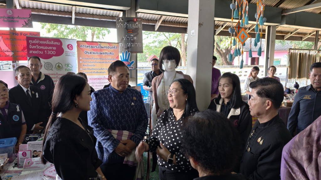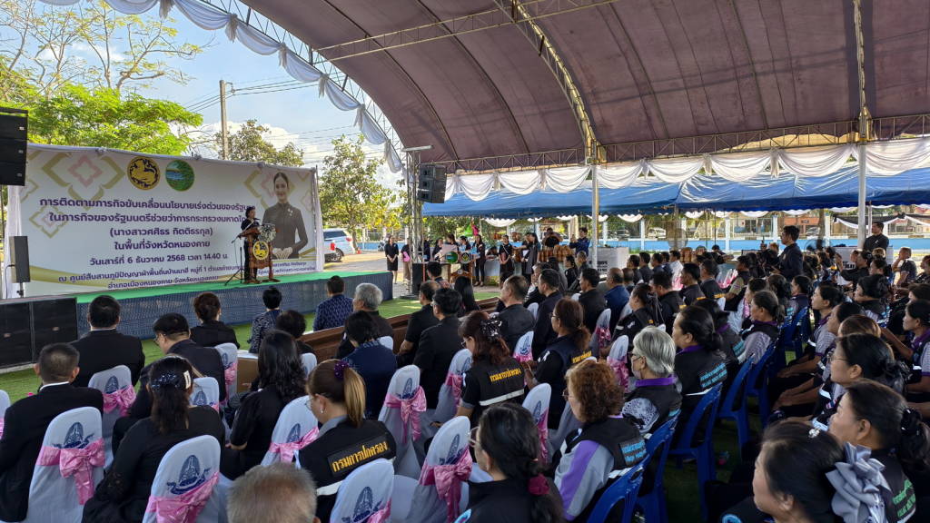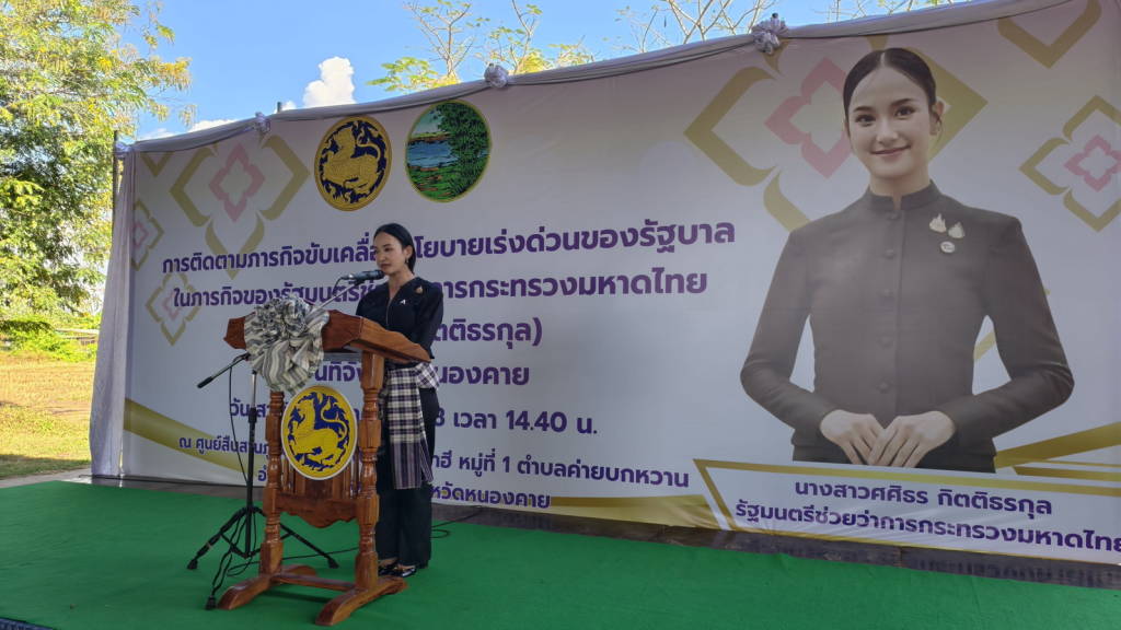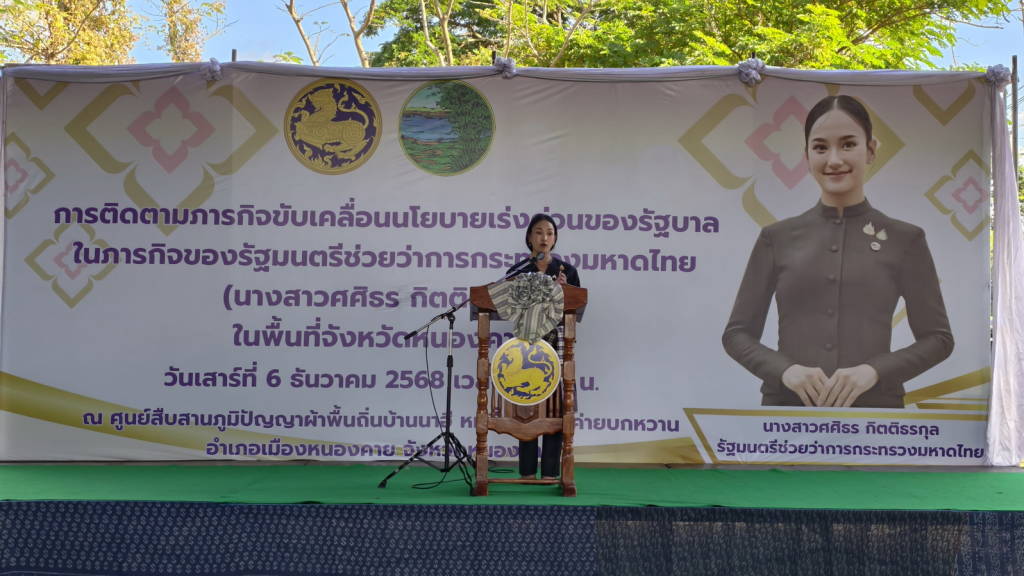 เมื่อช่วงบ่ายวานนี้ (6 ธ.ค. 68) นางสาวศศิธร กิตติธรกุล รัฐมนตรีช่วยว่าการกระทรวง มหาดไทย ตรวจราชการในพื้นที่เพื่อมอบนโยบายตลอดจนแนวทางการขับเคลื่อนงานตามภารกิจ ของกระทรวงมหาดไทย และกรมการพัฒนาชุมชน ประจำปีงบประมาณ พ.ศ. 2568 ณ ศูนย์สืบสานภูมิปัญญาผ้าพื้นถิ่นบ้านนาฮี หมู่ที่ 1 ต.ค่ายบกหวาน อ.เมืองหนองคาย จ.หนองคาย โดยมีนายศรัณศักด์ ศรีเครือเนตร ผู้ว่าราชการจังหวัดหนองคาย พร้อมส่วนราชการ หน่วยงานที่เกี่ยวข้อง องค์กรปกครองส่วนท้องถิ่น องค์กรแกนนำเครือข่ายงานพัฒนาชุมชน และประชาชนชาว ต.ค่ายบกหวาน ให้การต้อนรับ ซึ่งก่อนการพบปะและมอบนโยบาย รัฐมนตรีช่วยว่าการกระทรวง มหาดไทย ได้เยี่ยมชมการดำเนินงานของศูนย์สืบสานภูมิปัญญาผ้าพื้นถิ่นบ้านนาฮี และเยี่ยมชมผลิตภัณฑ์โอทอป ของกลุ่มโอทอปของ ต.ค่ายบกหวาน