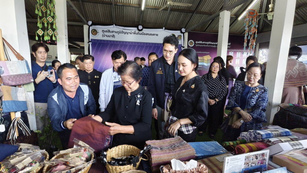 นางสาวศศิธร กิตติธรกุล รัฐมนตรีช่วยว่าการกระทรวงมหาดไทย ตรวจราชการในพื้นที่เพื่อมอบนโยบายตลอดจนแนวทางการขับเคลื่อนงานตามภารกิจ ของกระทรวงมหาดไทย และกรมการพัฒนาชุมชน ประจำปีงบประมาณ พ.ศ. 2568 ณ ศูนย์สืบสานภูมิปัญญาผ้าพื้นถิ่นบ้านนาฮี หมู่ที่ 1 ต.ค่ายบกหวาน อ.เมืองหนองคาย จ.หนองคาย