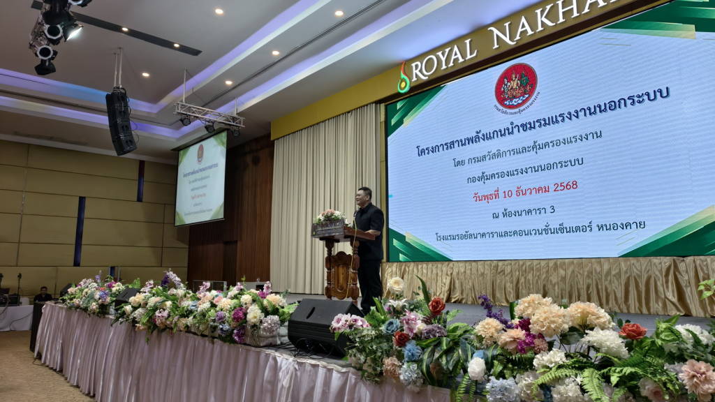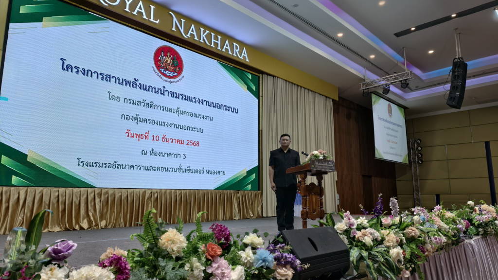 วันนี้ (10 ธ.ค. 68) ณ โรงแรมรอยัลนาคาราและคอนเวนชั่นเซ็นเตอร์หนองคาย นายเกษมสันต์ เครือเจริญ ผู้ตรวจราชการกรม เป็นประธานในพิธีเปิดการอบรมโครงการ "สานพลังแกนนำชมรมแรงงานนอกระบบ" ที่กรมสวัสดิการและคุ้มครองแรงงาน จัดให้มีขึ้น
