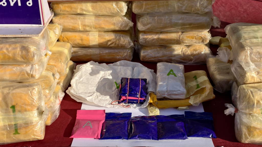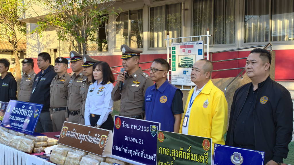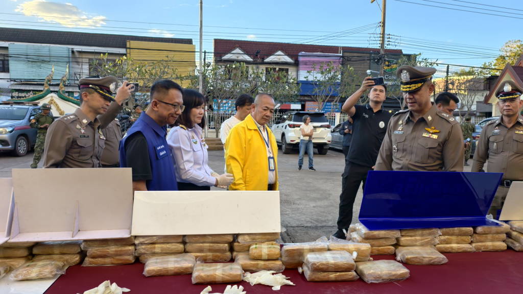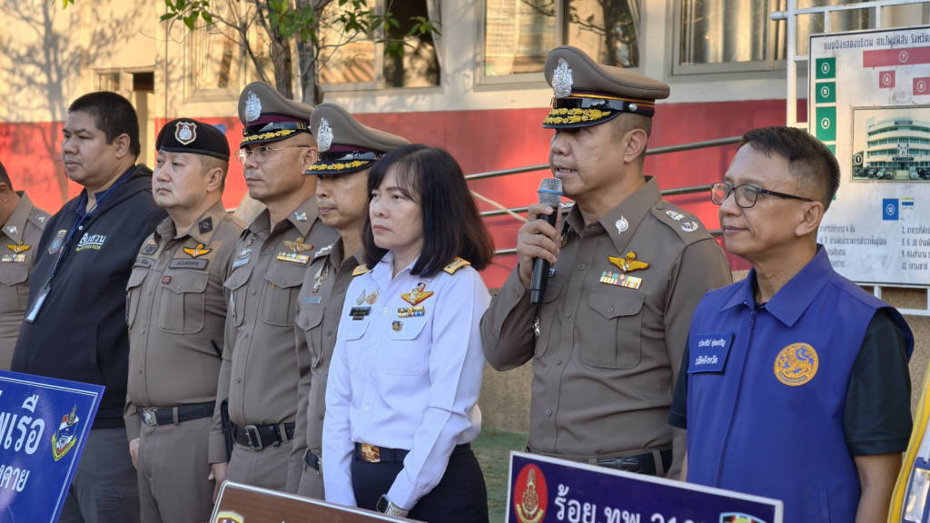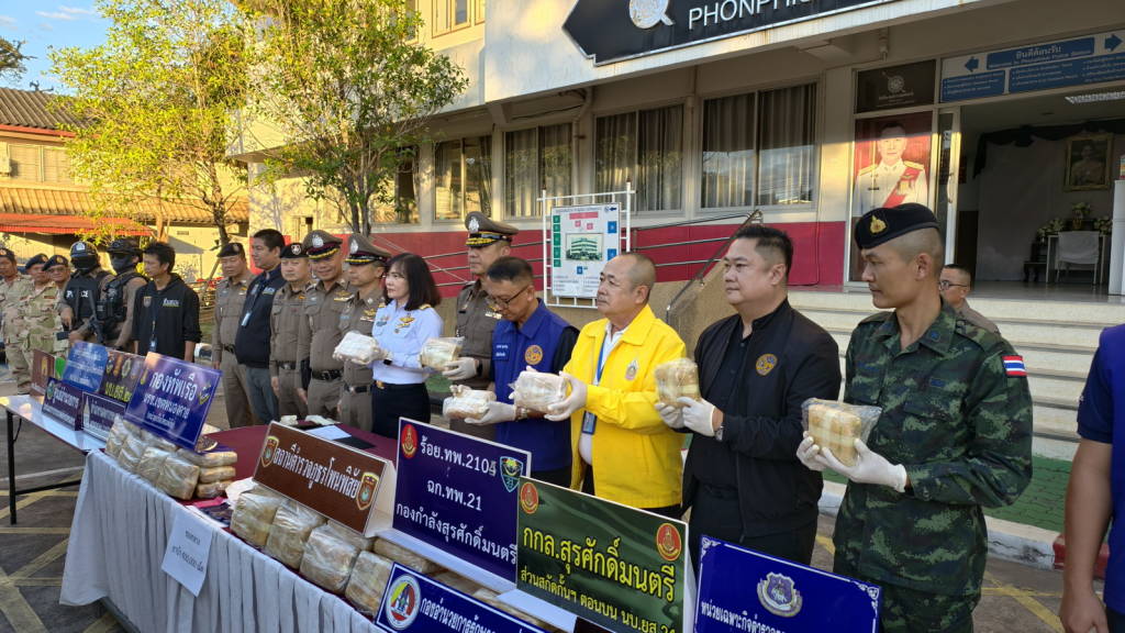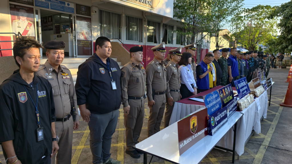 เมื่อเวลา 16.50 น.วันนี้ (17 ธ.ค. 68) ที่หน้า สภ.โพนพิสัย จ.หนองคาย นายประทีป อุ่ยเจริญ ปลัดจังหวัดหนองคาย , พล.ต.ต.อัทธชนม์ ช่วงงาม ผบก.ภ.จว.หนองคาย , พ.ต.อ.ประภาพ ธิติศักดิ์ รอง ผบก.ภ.จว.หนองคาย , พ.ต.อ.วิทยากรณ์ ษมากรวิทิต ผกก.สภ.โพนพิสัย , พันตรี วิทยา สิงห์อร ผบ.ร้อย ฉก.ทพ.2104 , นางสาววรรณา ผู้อุตส่าห์ นายด่านศุลกากรหนองคายปฏิบัติหน้าที่ ผู้อำนวยการสำนักงานศุลกากรหนองคาย , พ.ต.ท.สิทธิรักษ์ สิริสิงห์ รอง ผกก.ป.สภ.โพนพิสัย , ร.อ.ภาสพล สีทองเกตุ หน.หน่วยเรือโพนพิสัย , นายพลภัทร จันทร์ลุน ปลัดอำเภอโพนพิสัย ผู้แทนนายอำเภอโพนพิสัย , ร.ต.ไชโย หรพูน ผู้แทน บก.ควบคุมที่ 2 กกล.สุรศักดิ์มนตรี พร้อมเจ้าหน้าที่หน่วยงานความมั่นคงในพื้นที่ที่เกี่ยวข้อง ร่วมกันแถลงข่าวการตรวจยึดตรวจยึดยาบ้า จำนวน 4 แสนบาท เจ้าหน้าที่ สภ.โพนพิสัย ร่วมกับหน่วยงานความมั่นคงในพื้นที่ ตรวจยึดได้ที่บริเวณริมถนนสะพานห้วยหลวง ก่อนถึงทางเข้าหมู่บ้านข้องไก่ ม.5 ต.ชุมช้าง อ.โพนพิสัย จ.หนองคาย เมื่อเวลาประมาณ 05.20 น.วันนี้ (17 ธ.ค. 68)
