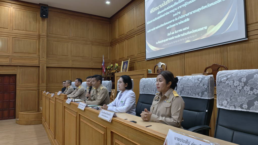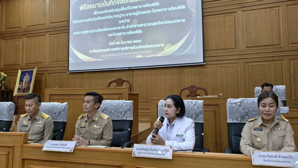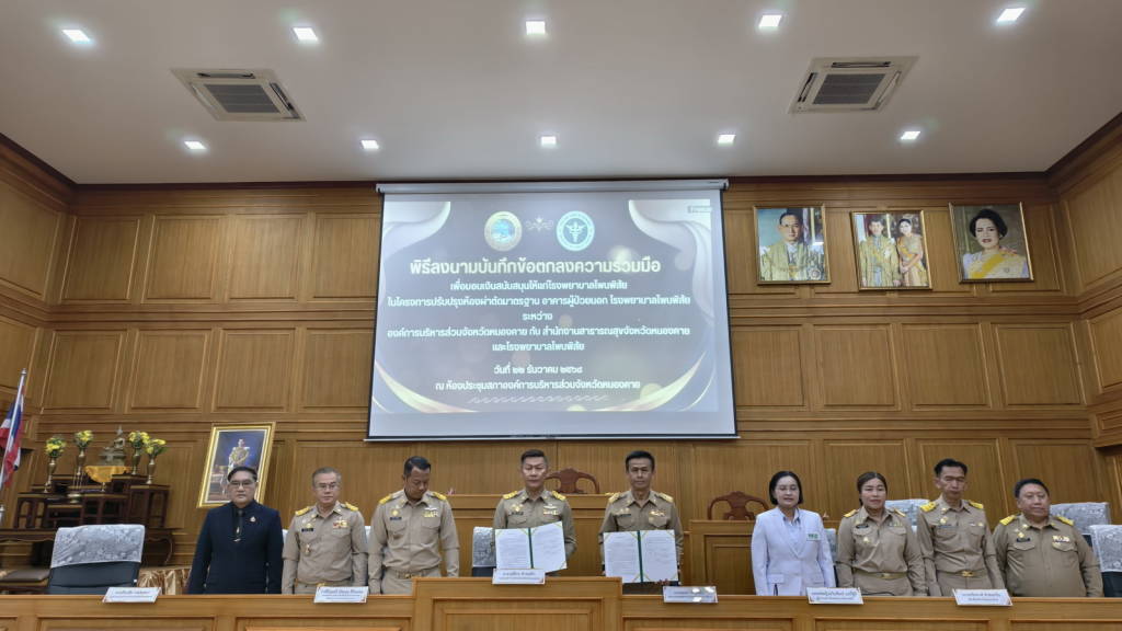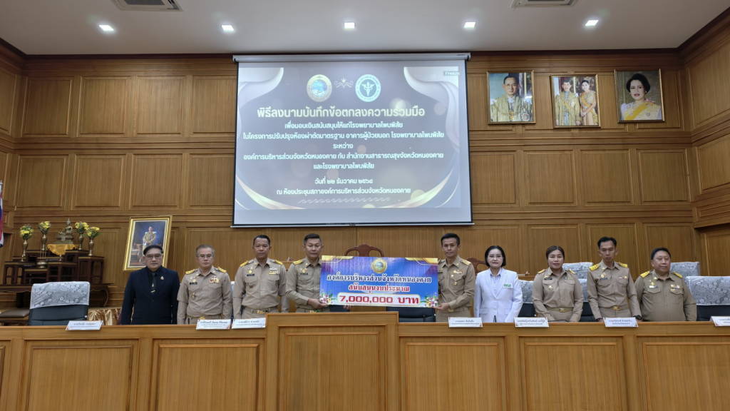 องค์การบริหารส่วนจังหวัดหนองคาย จัดพิธีลงนามบันทึกข้อตกลงความร่วมมือ (MOU) สนับสนุนงบประมาณให้แก่โรงพยาบาลโพนพิสัย ในโครงการปรับปรุงห้องผ่าตัดมาตรฐาน อาคารผู้ป่วยนอก โรงพยาบาลโพนพิสัย จังหวัดหนองคาย เป็นจำนวนเงินงบประมาณ 7 ล้านบาท