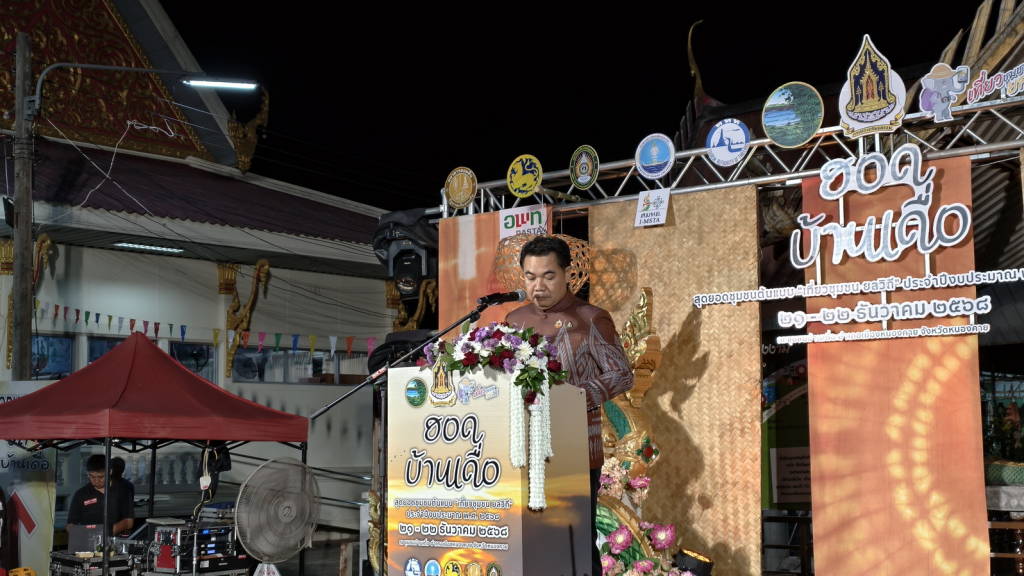 เมื่อช่วงค่ำวันนี้ (22 ธ.ค. 68) ณ ลานวัฒนธรรมริมโขง วัดอุทุมพร บ้านเดื่อ ต.บ้านเดื่อ อ.เมืองหนองคาย จ.หนองคาย นายประสพ เรียงเงิน ปลัดกระทรวงวัฒนธรรม เป็นประธานในพิธีเปิดสุดยอดชุมชนต้นแบบ “เที่ยวชุมชน ยลวิถี” ประจำปีงบประมาณ พ.ศ.2568 โดยมีนายศรัณศักด์ ศรีเครือเนตร ผู้ว่าราชการจังหวัดหนองคาย กล่าวต้อนรับ มีนายรวิโรจน์ สองทุ่ง นายกเทศมนตรีตำบลบ้านเดื่อ กล่าวรายงาน มีนางสาวเพชรรัตน์ สายทอง หัวหน้าผู้ตรวจกระทรวงวัฒนธรรม , นางฤดีวรรณ ศรีเครือเนตร นายกเหล่ากาชาดจังหวัดหนองคาย , ผู้บริหารกระทรวงวัฒนธรรมและวัฒนธรรมจังหวัดในพื้นที่ภาคตะวันออกเฉียง เหนือ , หัวหน้าส่วนราชการ และหน่วยงานที่เกี่ยวข้อง เข้าร่วมในงานฯครั้งนี้ด้วย ซึ่งก่อนพิธีเปิด ประธานในพิธีพร้อมคณะฯ ได้มีการชมต้นมะเดื่อยักษ์ 700 ปี ชมการสาธิตการพับนกใบตาลและร่วมผูกนกใบตาล สักการะหลวงพ่อทันใจ ชมเรือโบราณ ชมการสาธิตภูมิปัญญาท้องถิ่นและร่วมกิจกรรม Work Shop สัมผัสวิถีไทบ้านเดื่อ เป็นต้น
