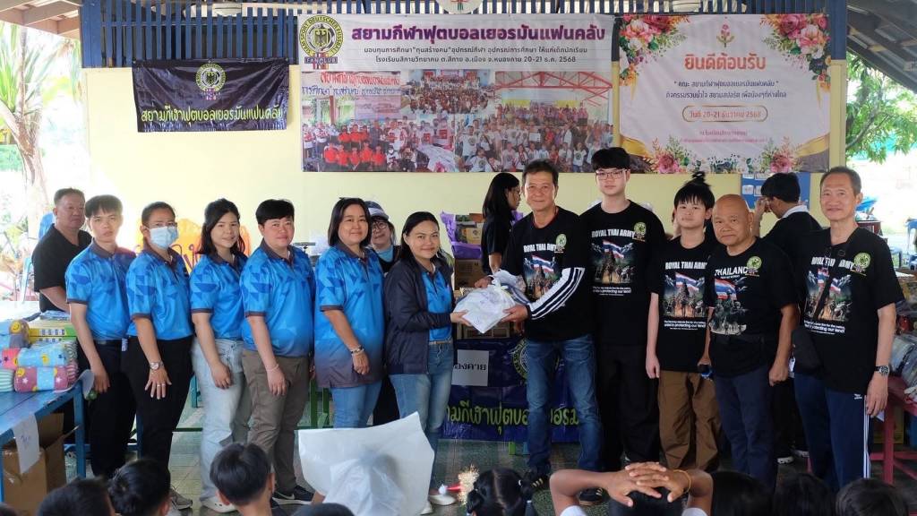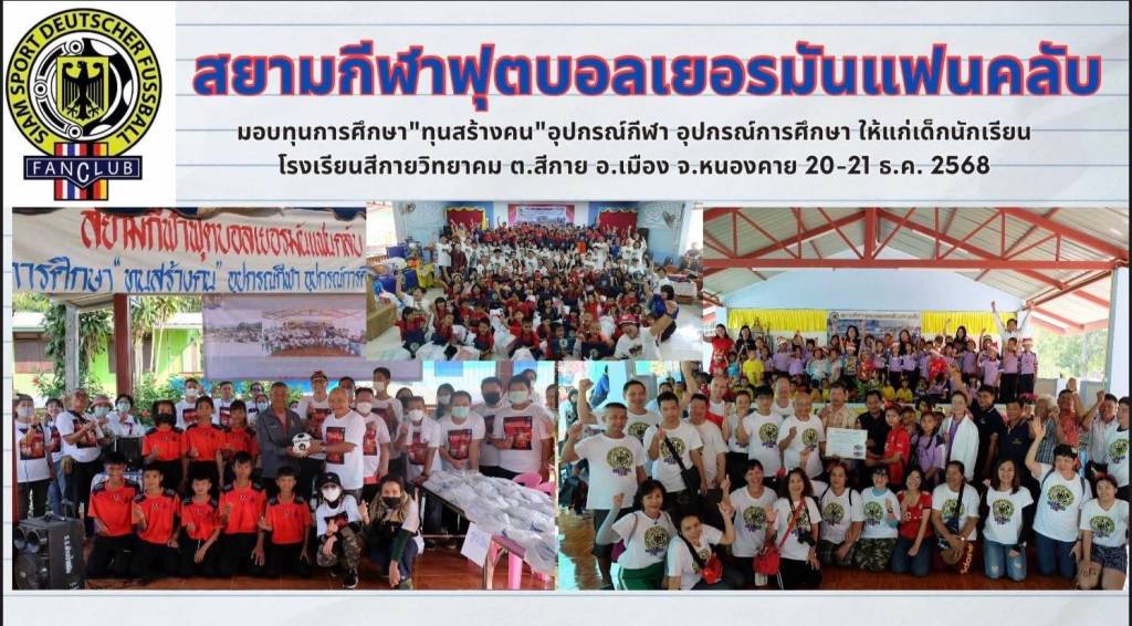เมื่อวันที่ 21 ธ.ค. 68 ที่ผ่านมา พลอากาศโท รองศาสตราจาร์ย นิกร ชำนาญกุล (ก. ป้อหล่วน) คัมภีร์ฟุตบอลเยอรมัน ของเมืองไทย ได้นำชมรมสยามกีฬาฟุตบอลเยอรมันแฟนคลับ Siam Sport Deutsche Fußball Fanclub (SSDF FC) จัดกิจกรรมสัญจรที่โรงรียนสีกายวิทยาคม อำเภอเมืองหนองคาย จังหวัดหนองคาย โดยปีนี้ พ.ศ.2568 ครบรอบ 31 ปีของการทำกิจกรรมสัญจร โดยมี นางสาว กันต์ธนัท บุญก้อง ผู้อำนวยการโรงเรียนสีกายวิทยาคม พร้อมคณะครู นักเรียน ประชาชนในพื้นที่ให้การต้อนรับ