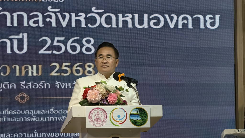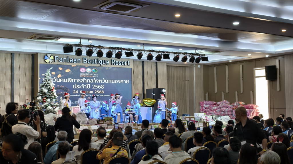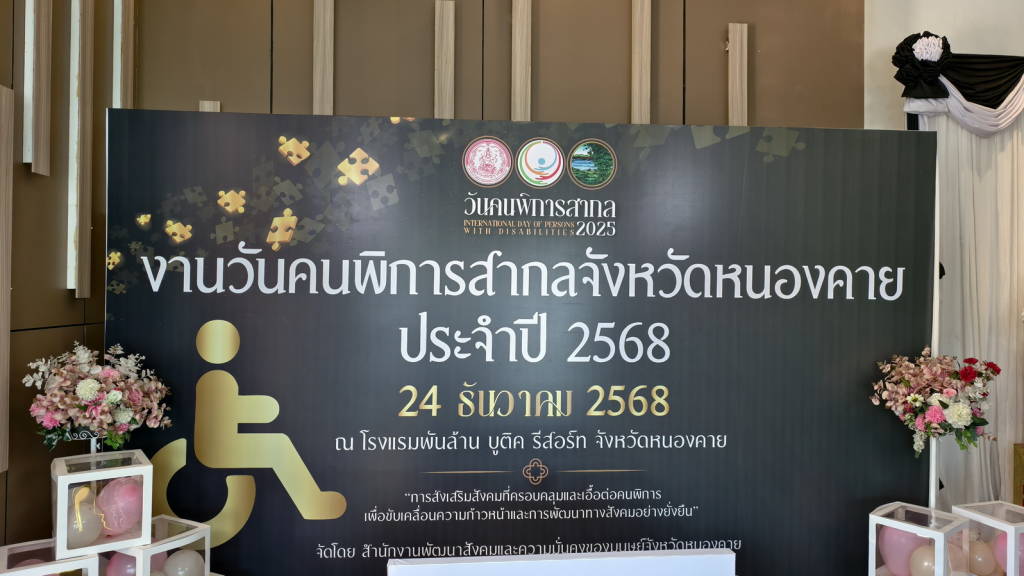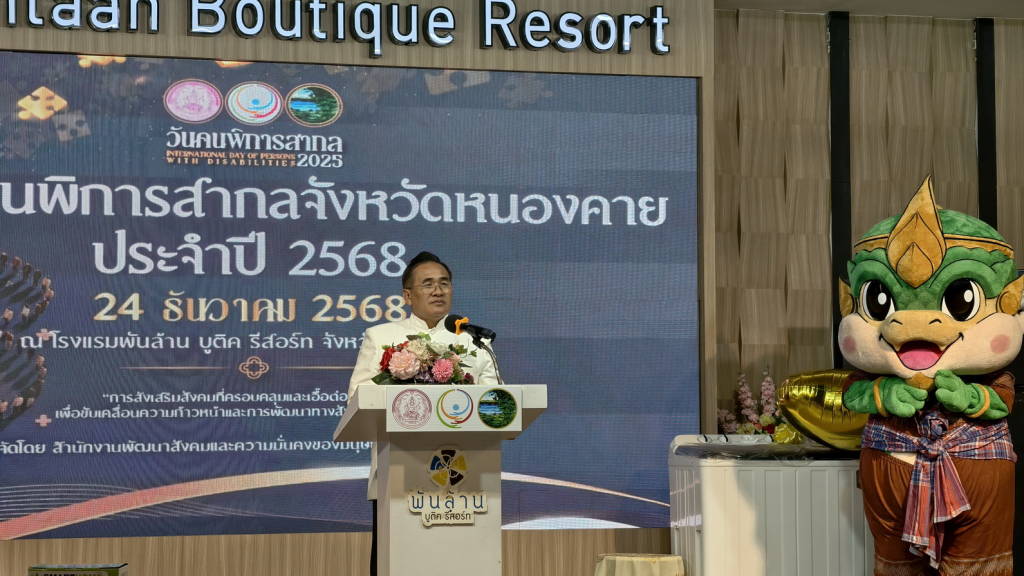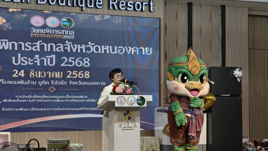 วันนี้ (24 ธ.ค. 68) ที่โรงแรมพันล้าน บูติค รีสอร์ท หนองคาย อำเภอเมืองหนองคาย จังหวัดหนองคาย นายศรัณศักด์ ศรีเครือเนตร ผู้ว่าราชการจังหวัดหนองคาย เป็นประธานในพิธีเปิดงานวันคนพิการสากลจังหวัดหนองคาย ประจำปี 2568ที่สำนักงานพัฒนาสังคมและความมั่นคงของมนุษย์จังหวัดหนองคาย ร่วมกับหน่วยงานที่เกี่ยวข้องกับคนพิการ คณะอนุกรรมการส่งเสริมและพัฒนาคุณภาพชีวิตคนพิการ องค์กรคนพิการในจังหวัดหนองคาย สภาคนพิการทุกประเภทจังหวัดหนองคาย และคนพิการจังหวัดหนองคาย จัดให้มีขึ้น โดยมีนางบุปผา ทัพกฤษณ์ พัฒนาสังคมและความมั่นคงของมนุษย์จังหวัดหนองคาย กล่าวรายงาน