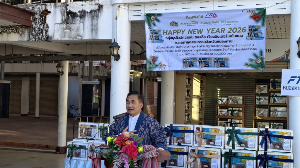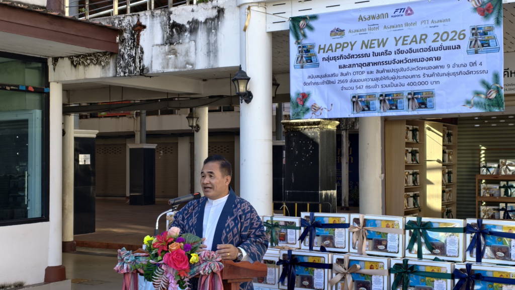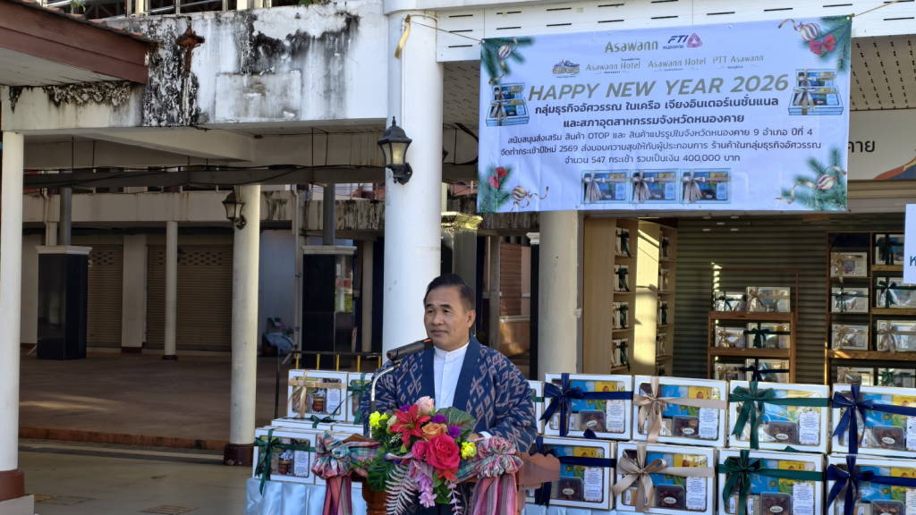 ผู้ว่าราชการจังหวัดหนองคาย เป็นประธานในพิธีส่งมอบกล่องของขวัญปีใหม่ ประจำปี 2569 จำนวน 550 ชุด คิดเป็นเงินกว่า 4 แสนบาท ที่บริษัทในเครือเจียงอินเตอร์เนชั่นแนล จำกัด สั่งซื้อจากบริษัท ประชารัฐสามัคคีหนองคาย จำกัด ต่อเนื่องเป็นปีที่ 4 แล้ว