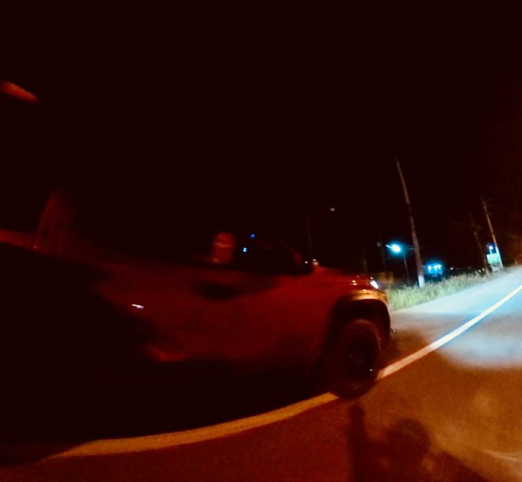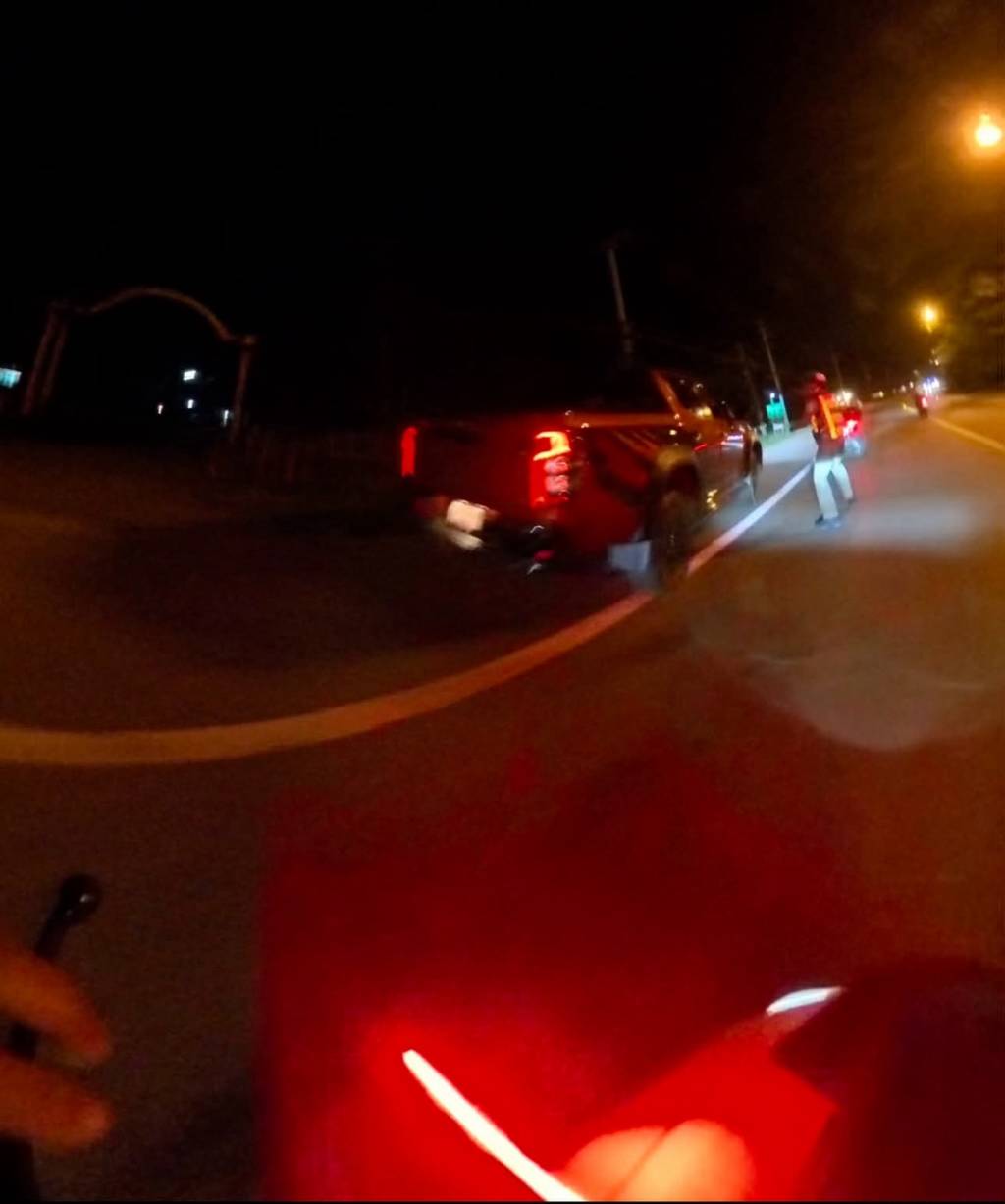 ต่อมาวันที่ 22 ธันวาคม 2568 ขณะที่ตนออกตรวจการจราจรในเขตพื้นที่รับผิดชอบ เมื่อตรวจมาถึงบริเวณหน้าธนาคารกสิกรไทย สาขาท่าบ่อ ตนสังเกตพบรถยนต์กระบะยี่ห้อมิตซูบิชิ สีส้มดำ ทะเบียน กต 1318 หนองคาย จอดติดเครื่องยนต์อยู่หน้าธนาคาร และเป็นรถคันที่หลบหนีด่านตรวจเมื่อวันที่ 15 ธ.ค. 68 ที่ผ่านมา ตนจึงเข้าตรวจสอบและส่งสัญญาณเพื่อขอตรวจสอบ ปรากฏว่ารถยนต์กระบะคันดังกล่าวไม่ยอมจอดและพยายามขับพุ่งชนตนเองอีกครั้งก่อนขับหลบหนีมุ่งหน้าไปไปตามถนนสายท่าบ่อ-โคกคอน ตนจึงได้ขับรถจักรยานยนต์ติดตามพร้อมวิทยุขอกำลังเจ้าหน้าที่เพื่อร่วมจับกุม พร้อมวิทยุประสานศูนย์บริการประชาชนตำบลโคกคอน ช่วยตั้งจุดสกัดบริเวณสี่แยกศูนย์บริการประชาชนตำบลโคกคอน