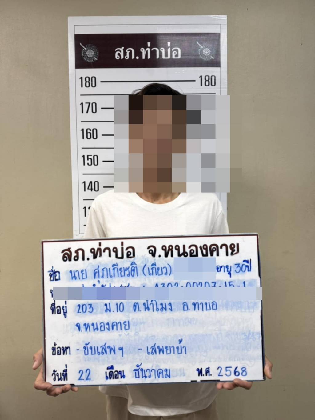 โดยจากการสอบถามทราบชื่อผู้ขับขี่คือนายศุภเกียรติหรือปาเกียว วงจันดา อายุ 30 ปี ที่อยู่203 หมู่ 10 ต.น้ำโมง อ.ท่าบ่อ จ.หนองคาย โดยนายศุภเกียรติให้การรับว่า กลัวถูกจับจึงขับหลบหนีด่านเมื่อวันที่ 15 ธันวาคม 68 และดันซวยมาเจอตำรวจคนเดิมอีกจึงคิดจะหลบหนี แต่หนีไม่พ้น ที่หลบหนีเพราะตนเสพยาบ้ามา กลัวจะถูกจับ