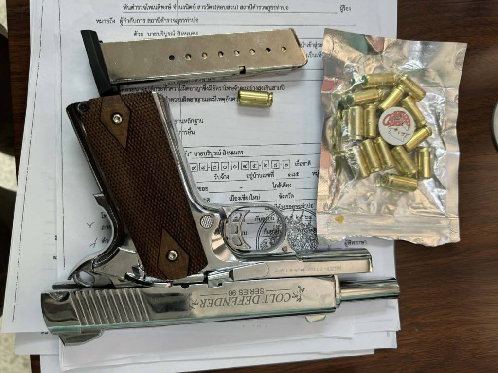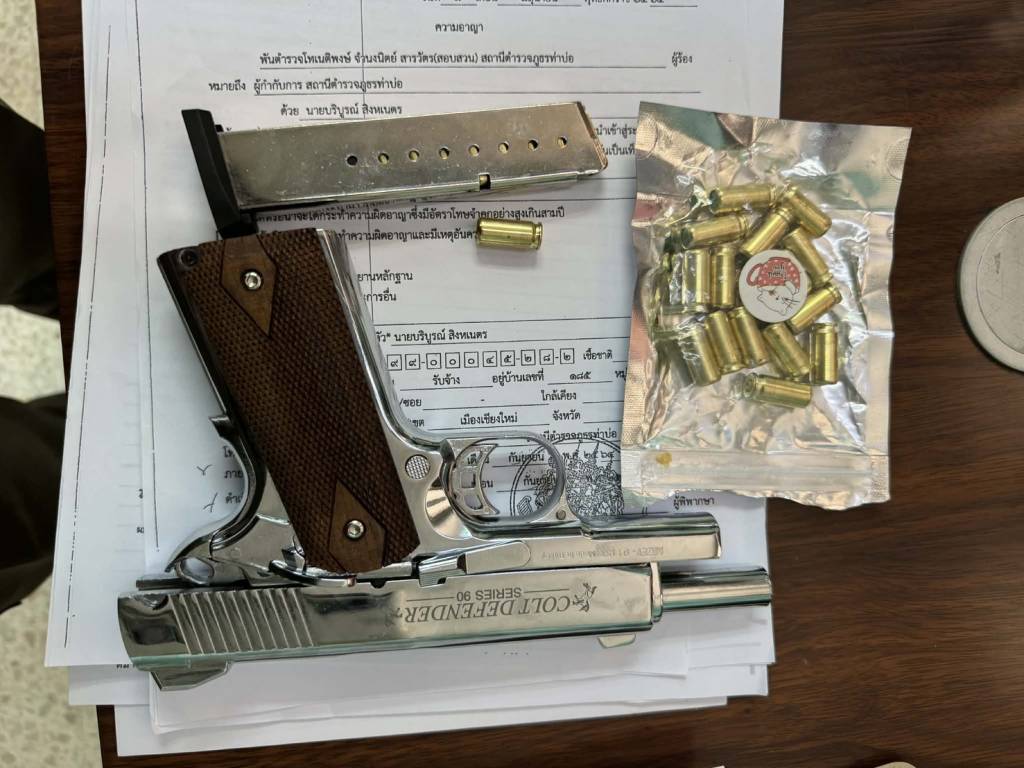 ต่อมาตนพร้อมเจ้าหน้าที่ได้ติดตามมาและพบว่า มี ร.ต.ท.ปิยวัฒน์ กำเนิดเกิด หัวหน้าศูนย์บริการประชาชน เจ้าหน้าที่ทหาร และสื่อมวลชน ได้ช่วยกันสกัดรถยนต์กระบะคันดังกล่าวไว้ได้ ตรวจค้นภายในรถพบอาวุธแบลงค์กัน 1 กระบอก พร้อมกระสุน จำนวนหนึ่ง