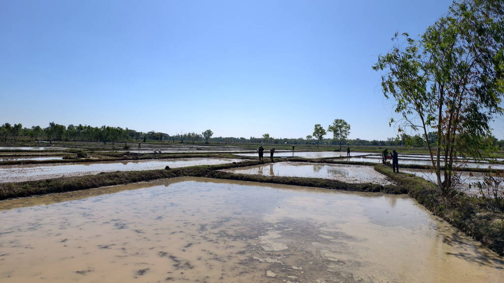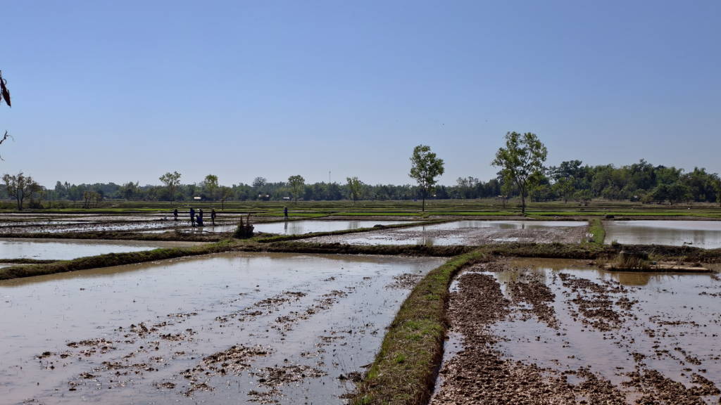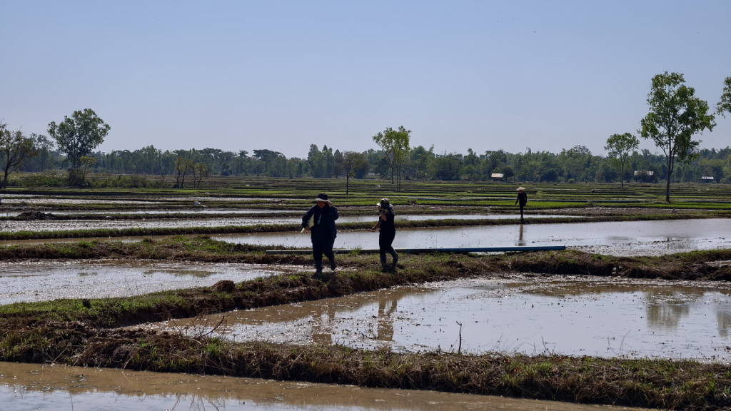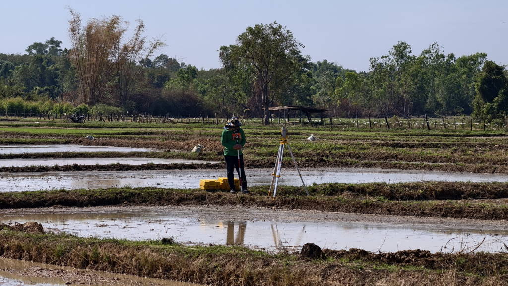 จุดแรกติดตามการปฏิบัติงานตามโครงการเดินสำรวจออกโฉนดที่ดินในพื้นที่หมู่ที่ 9 ตำบลวัดหลวง อำเภอโพนพิสัย จังหวัดหนองคาย โดยได้พบปะประชาชน ก่อนลงพื้นที่ในจุดที่เจ้าหน้าที่กำลังปฏิบัติงาน ซึ่งเป็นพื้นที่ทุ่งนาภายใน ต.วัดหลวง