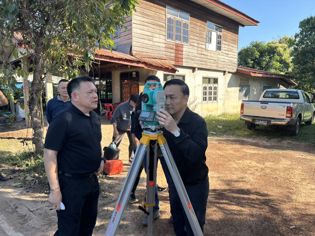 จุดที่สอง ได้ติดตามการปฏิบัติงานตามโครงการเดินสำรวจออกโฉนดที่ดินในพื้นที่หมู่ที่ 1 ตำบลโคกคอน อำเภอท่าบ่อ จังหวัดหนองคาย โดยได้พบปะประชาชน ก่อนลงพื้นที่ในจุดที่เจ้าหน้าที่กำลังปฏิบัติงาน ซึ่งเป็นพื้นที่บ้านเรือนประชาชนภายใน ต.โคกคอน นอกจากนี้ยังได้ตรวจติดตามความคืบหน้าของการก่อสร้างถนนโครงข่ายรอบเมืองหนองคาย อีกด้วย